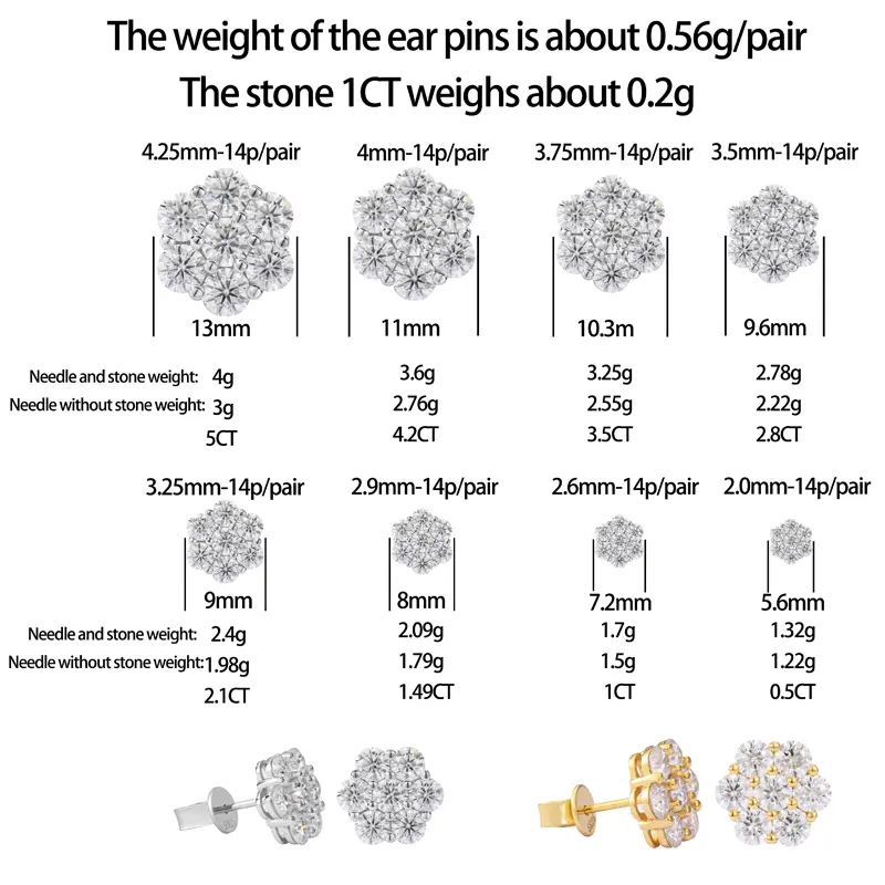 I ordered the 4.2 cr and they sent me the smallest size the stones dont test all as mossointe THERE SCAMMERS...DO NOT BUY GUYS