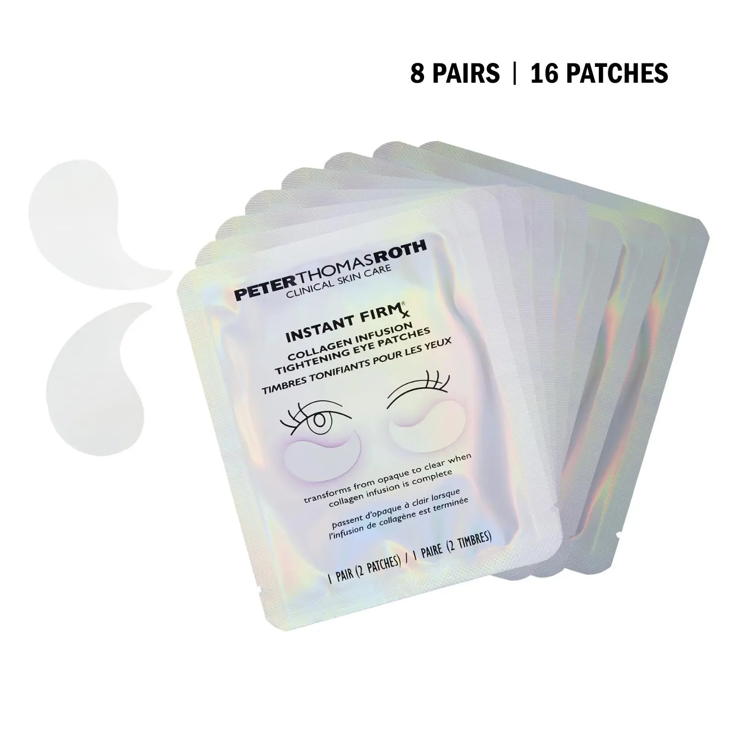 Clinically tested to instantly reduce the look of fine lines and wrinkles,* these eye patches change from opaque to clear when transformation is complete. Soaked in a firming solution of Collagen, Collagen Amino Acids, Peptides and Seaweed Extract, plus Hyaluronic Acid, Niacinamide and Caffeine.