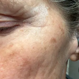 I was in hopes that this would be better than the original formula but that is not the case still very dry and leaves residue looks OK until you smile then it wrinkles back up. Photos are with product on