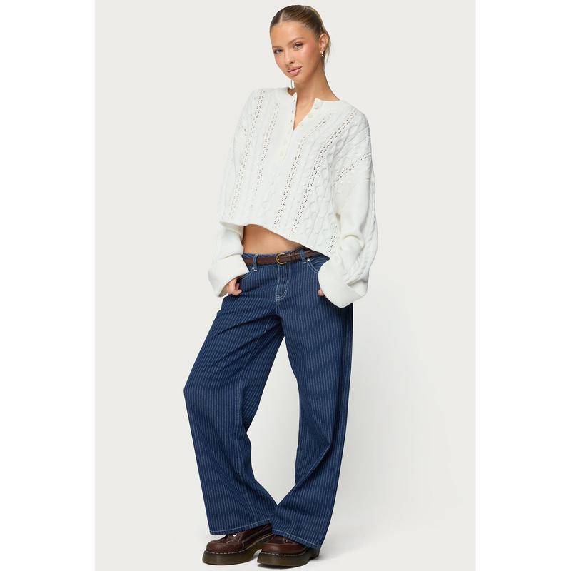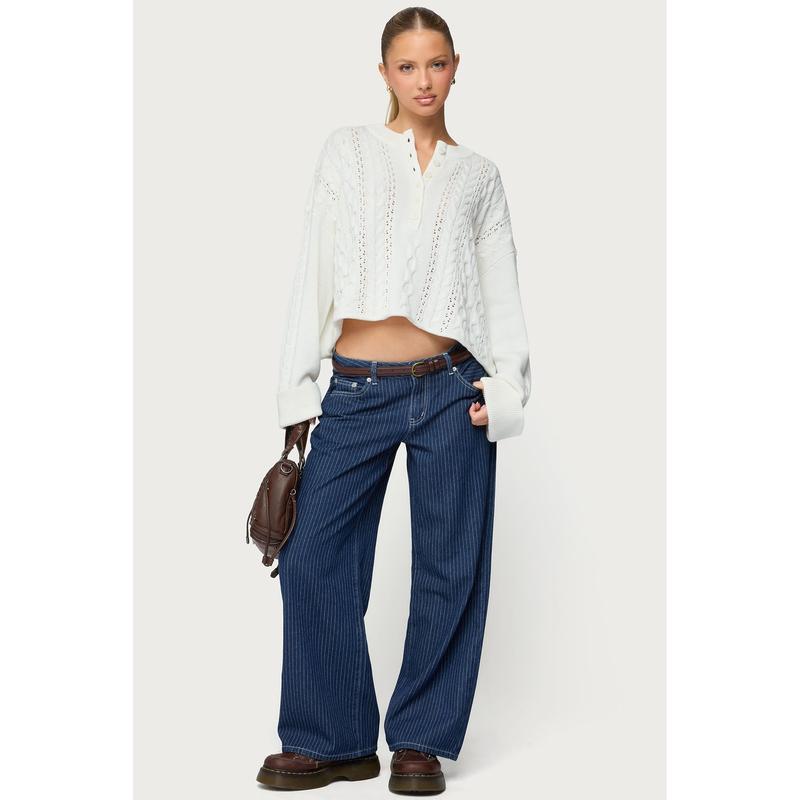 5. Petite Pinstripe Low Rise Baggy Jeans