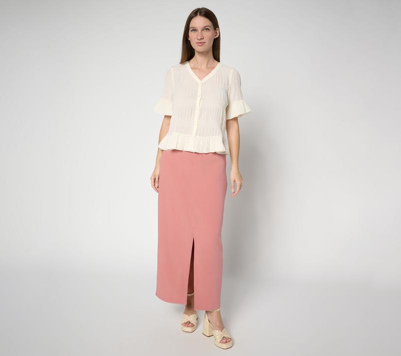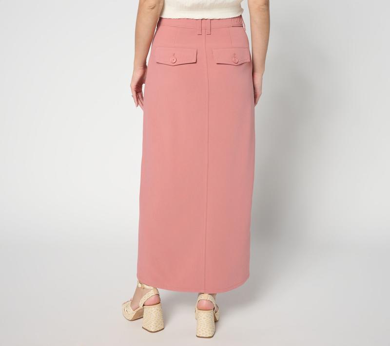 Me by Jennie Garth,Petite,Features:Woven twill utility maxi skirt, front flash pockets,front functional fly and button closure,self belt loops,welt back pockets with self flap and button closure,center front slit, Fit:Semi-Fitted-Follows the lines of the body with added wearing ease, Rise:At Waist,Missy Length:35", Plus Length:37", Content:79% Polyester, 17% Rayon, 4% Spandex, Care:MWC/DC/WWLC/ONCBWN/TDL/WIIN, COO:Imported (S)
