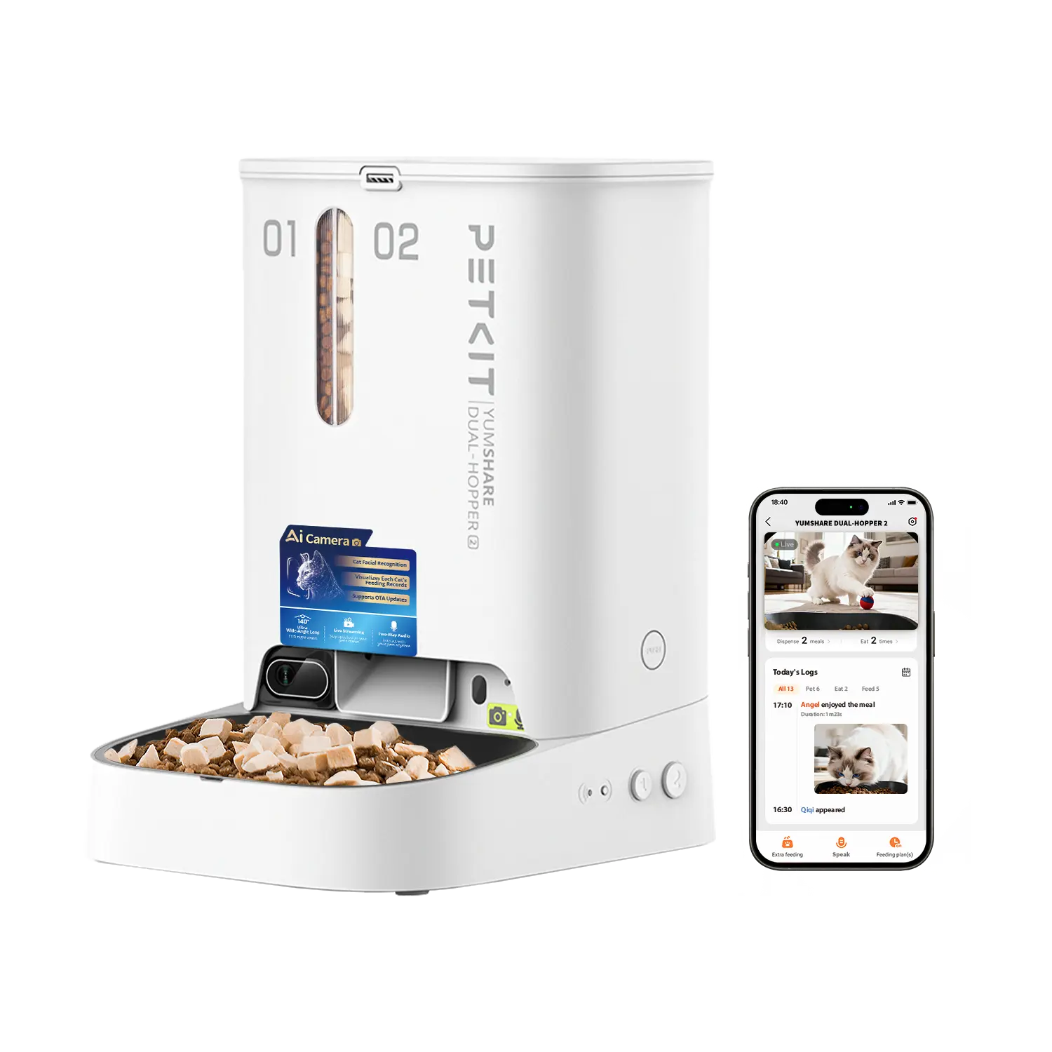 ·1080P HD High-quality Camera: The camera quality of this PETKIT Yumshare Dual-Hopper automatic pet feeder is superb! 1080P high resolution and 140° wide viewing angle allows you to watch and hear your fur babies anytime anywhere to ensure you don't miss a thing. It's like keeping an extra eye on your furriends. The night vision feature is a fantastic addition, easily capturing the movement of pets at night.