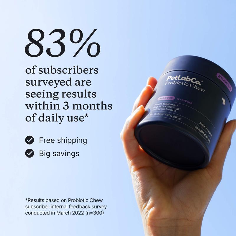 This product is amazing! My dog has a very sensitive stomach. We have tried other brands but they never worked. We absolutely love the probiotics. And so does my dog. She eats the chews like a treat! We love petlabco. We love this company!