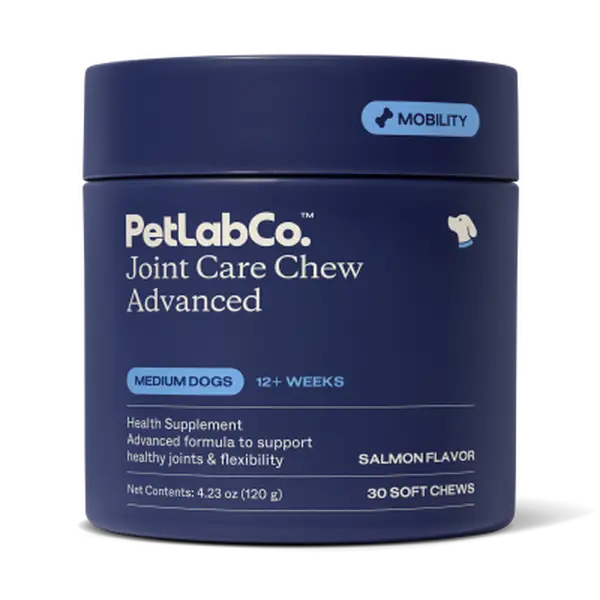 PetLabCo.’s salmon-flavored Joint Care Chew Advanced is our brand-new formula designed to make supporting your dog’s joints easier than ever before. Tailored for dogs of every size, from extra small to large breeds, these tasty joint chews for dogs contain an upgraded blend of beneficial ingredients that go beyond our original joint formula to deliver advanced support for joint comfort, flexibility, and mobility.