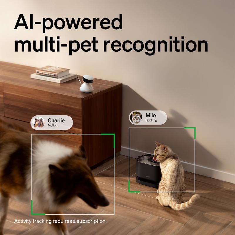 This AI pet camera identifies up to 5 pets by name, from any angle. It may struggle with similar pets. Pet profiles in the app let you monitor and share moments effortlessly. Enjoy a clear view of your pets' activities without scrubbing through hours of footage.