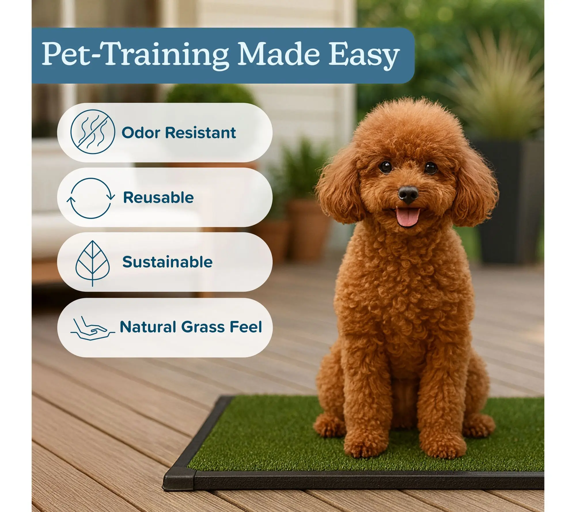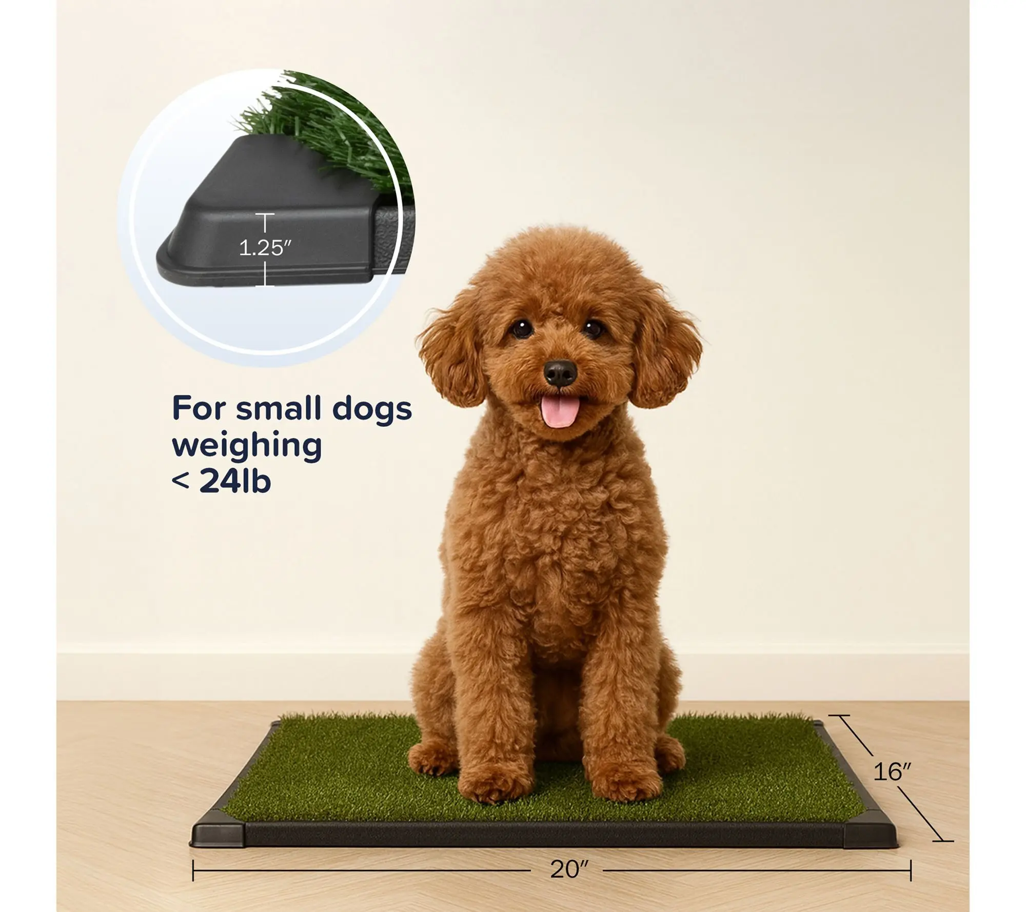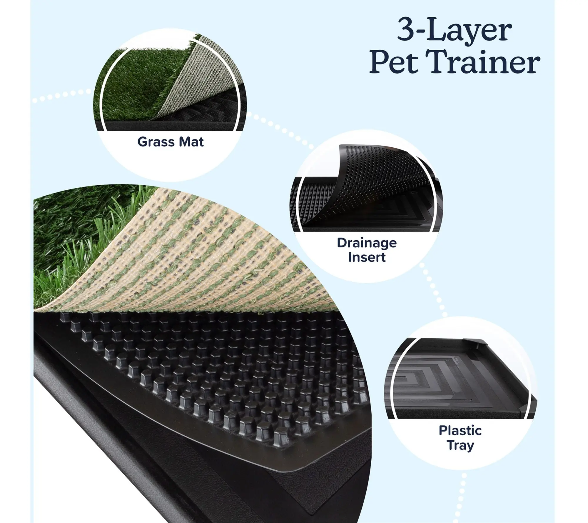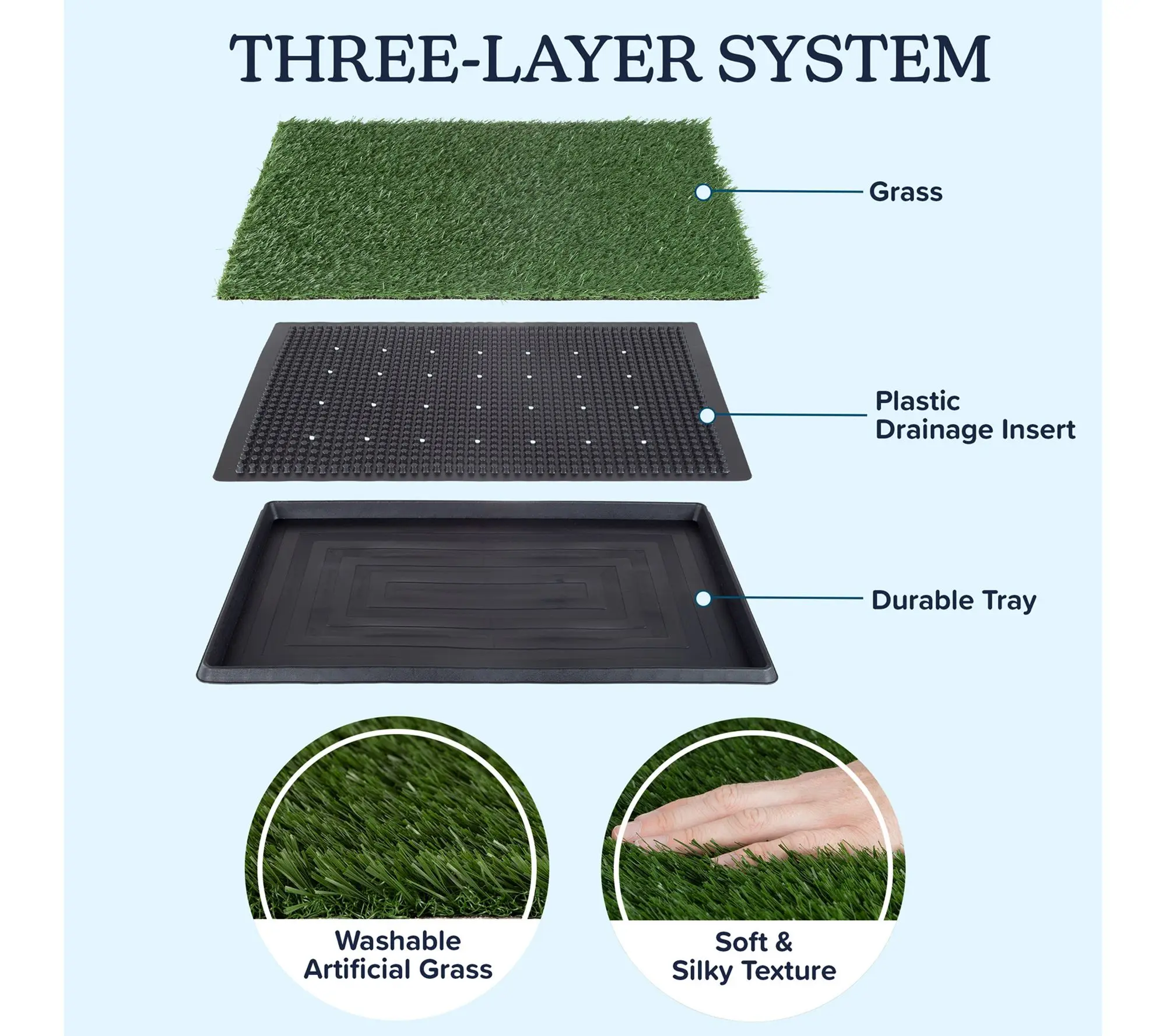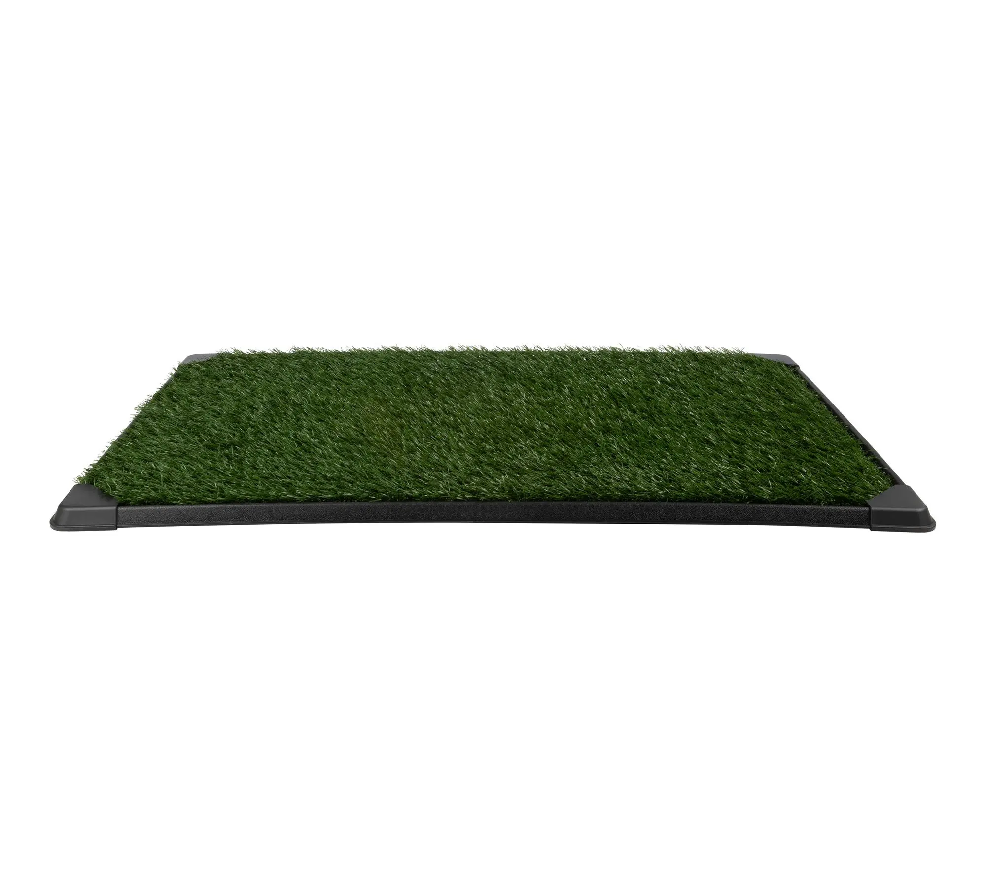 Tired of late-night walks or accidents when your pup can't dash outdoors? The Artificial Grass Puppy Pee Pad offers a smart indoor solution -- just set up on your balcony, patio, puppy playpen, or right in your home and let your pet relieve themselves on a surface that feels just like real turf. This three-layer system makes potty training smoother and clean-up a breeze. From PETMAKER.