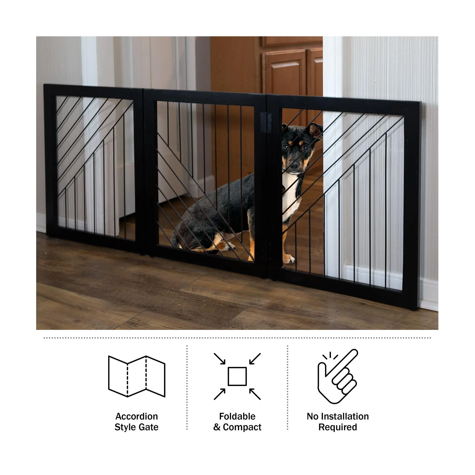 Keeping your pets out of areas they don't belong is easier than ever thanks to this stylish wooden gate that folds for easy storage. Perfect for blocking off doorways, hallways, and stairs, its freestanding design means no installation and quick set up. From Petmaker.