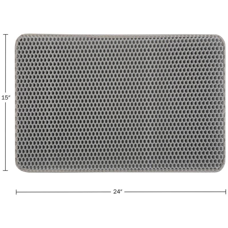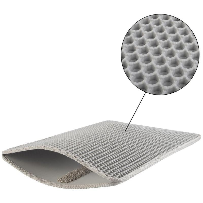 Keep your home clean and tidy with this litter box mat. Perfect for use under or in front of litter boxes, this mat features a double-layer honeycomb design that traps litter and messes, keeping them contained in one area. Easy to clean and waterproof, it protects your floors from accidents and stains, making it an essential addition to your cat supplies. From Petmaker.