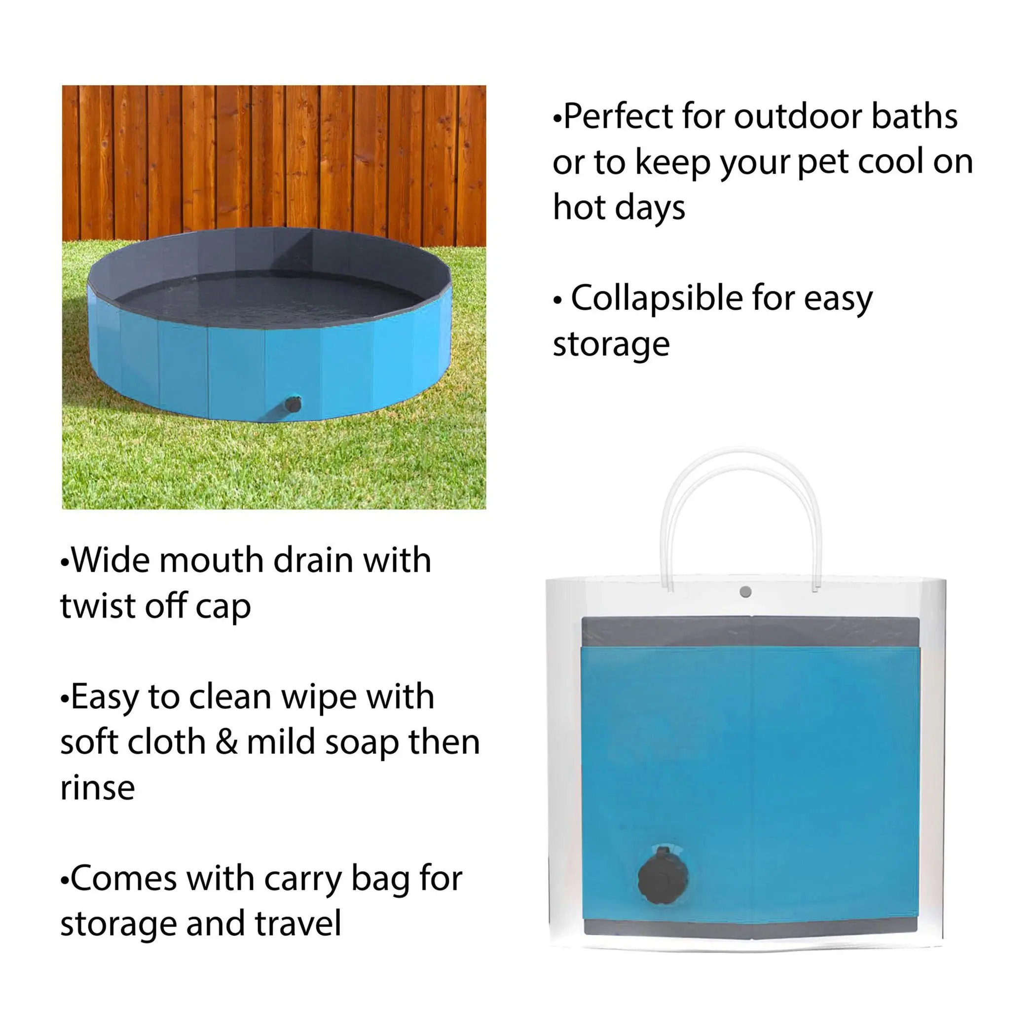 Keep your fur babies cool and entertained all summer long with the Petmaker portable dog pool for large dogs. This foldable pool is perfect for pets up to 80 lbs and comes with a convenient carrying bag, making it easy to store and travel-friendly. Use it as a bathing station or a cool spot for your furry friend to lounge and play. From Petmaker.