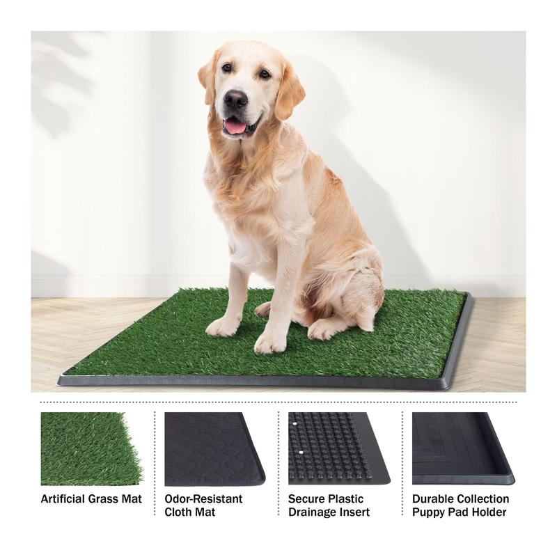 Make potty training a breeze with the Petmaker artificial grass reusable puppy pee pad. Perfect for small to medium-sized pets, this four-layer system provides a sanitary spot for your furry friend to relieve themselves indoors or on your balcony. Say goodbye to disposable pads and hello to easy clean-up with this eco-friendly solution. From Petmaker.