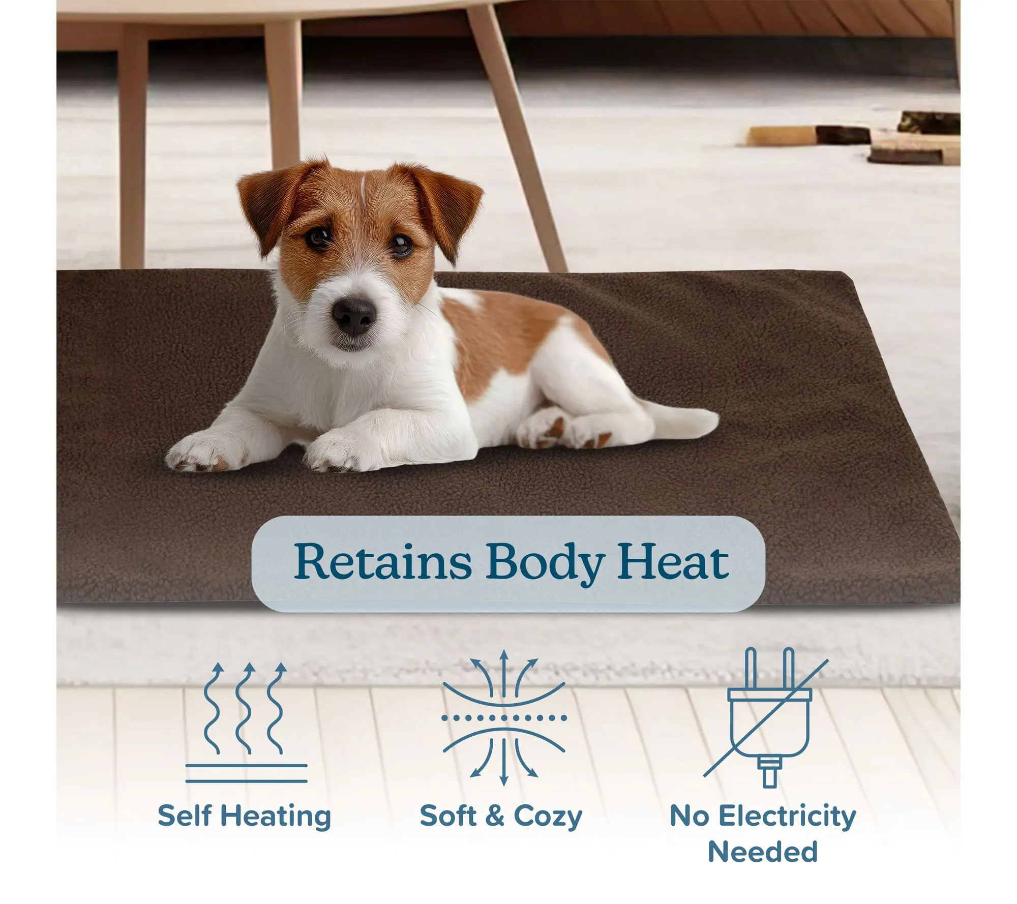 Keep your furry friend cozy during chilly nights or lazy afternoons with this self-warming pet bed, designed to radiate comforting warmth without any cords or plugs. The fuzzy polyester Sherpa cover and thermal insert create a plush retreat for cats, dogs, and small pets -- ideal for crate use, layering on beds, or transforming a favorite spot into a snuggle-worthy haven. From PETMAKER.