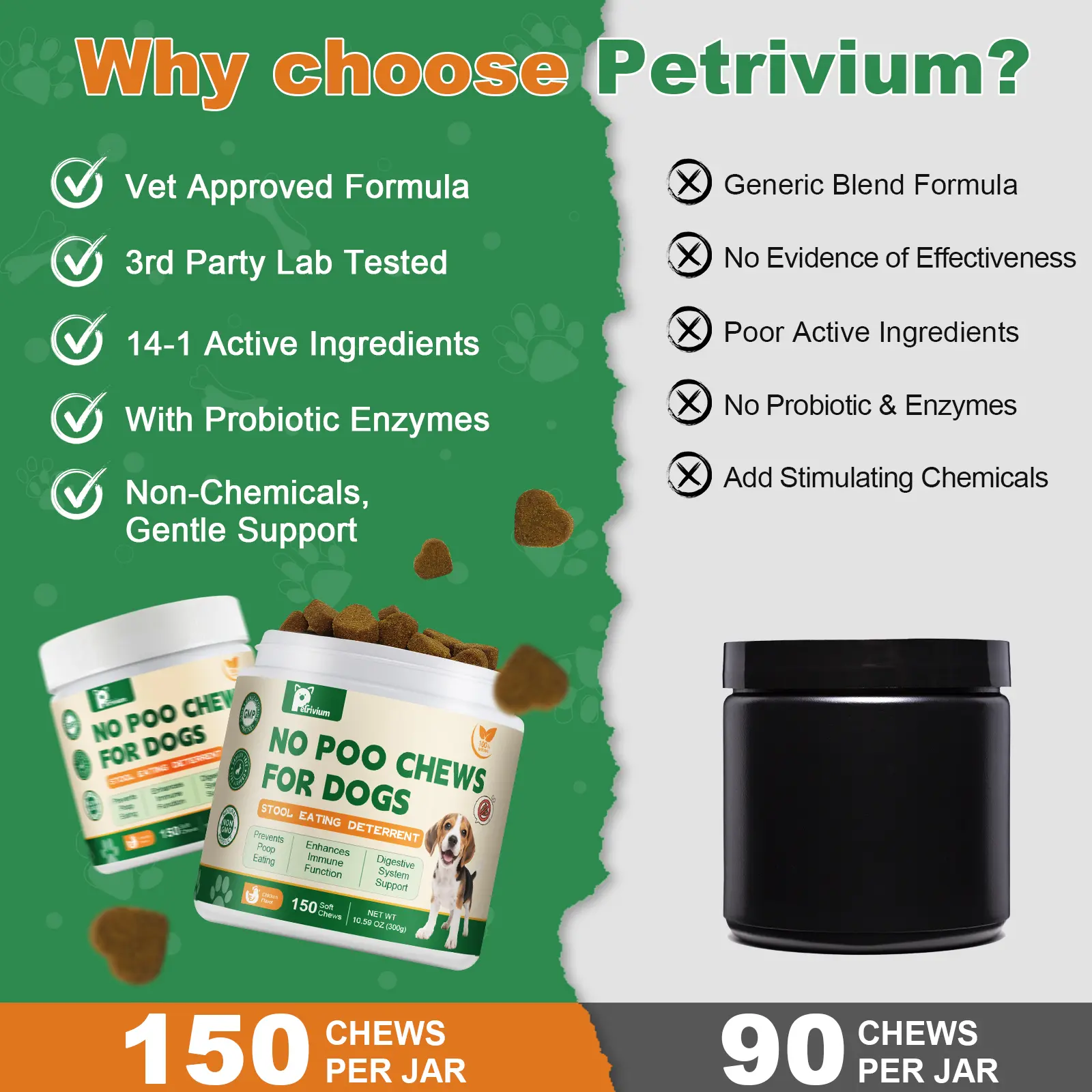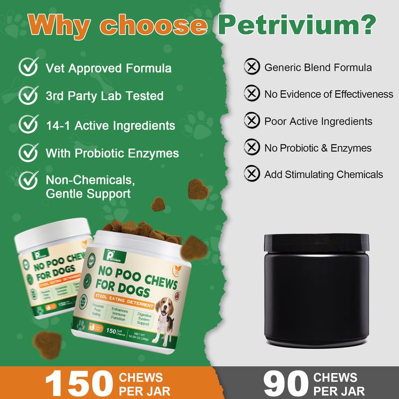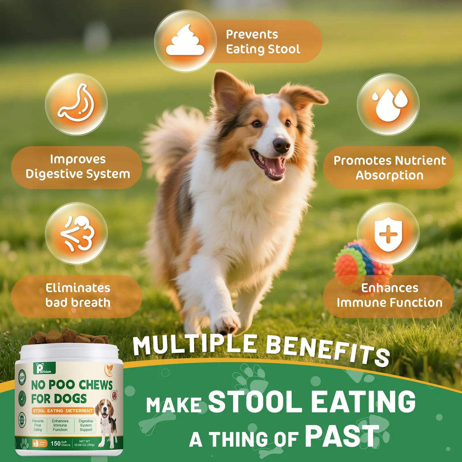 ·Prevents Eating Stool: Say goodbye to the unpleasant habit of coprophagia with our No Poo Chews for Dogs! Specially crafted to address the root causes of dog stool eating—including nutritional gaps and digestive imbalance—these coprophagia deterrent for dogs work from the inside out to make your dog’s stool less appealing.