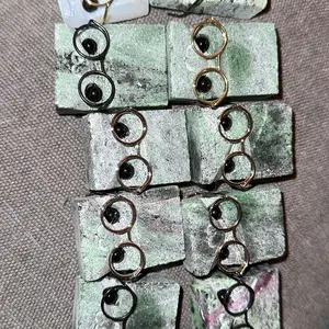 I received three pieces that were not polished and didn’t have vibrant colors or patterns like the pictures. The stones are dull, and not shiny or polished. They are cute, don’t get me wrong, but not as advertised. They’re very rough to the touch and dull.