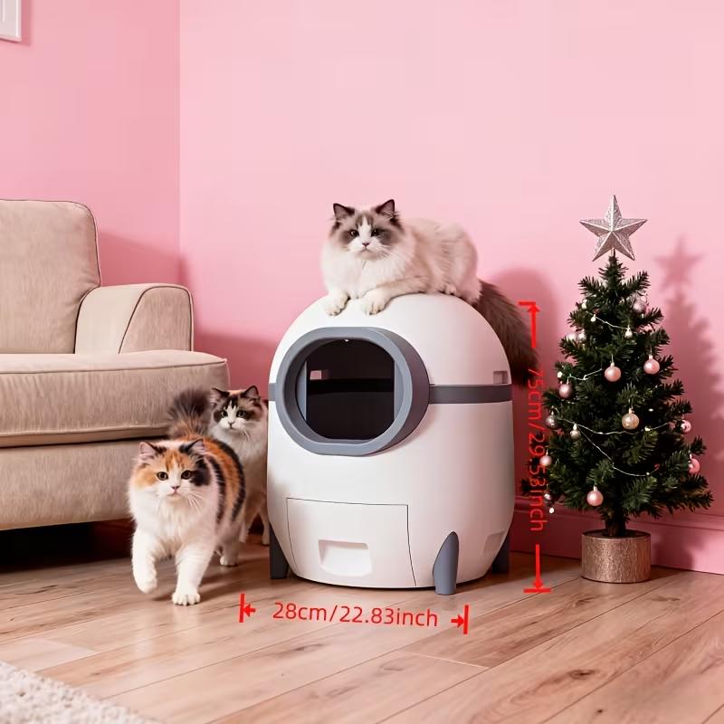 ·【Easy Maintenance】 Featuring a streamlined design, our litter box is effortless to disassemble and clean. The removable components facilitate quick cleaning, while the smooth structure ensures thorough sanitation.
