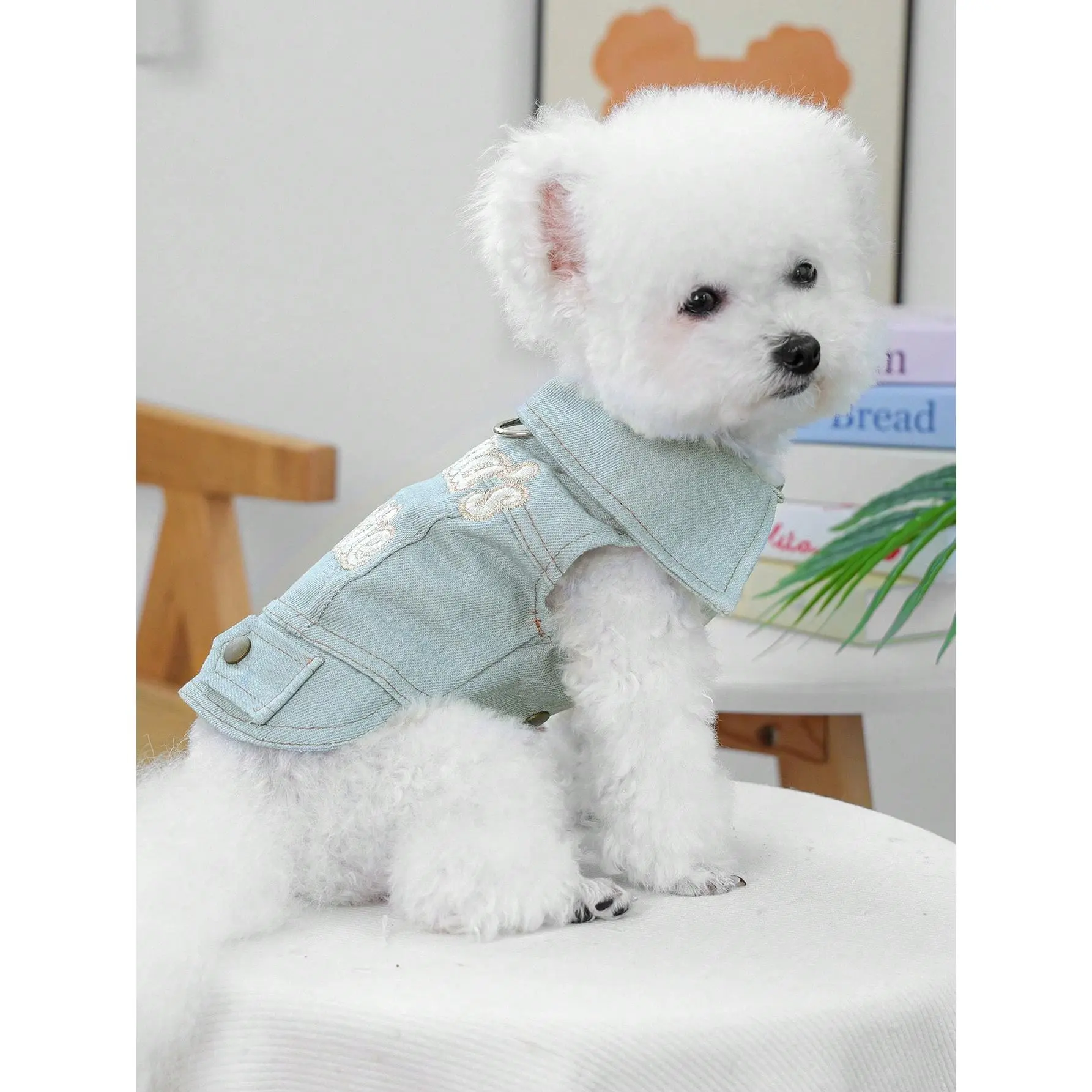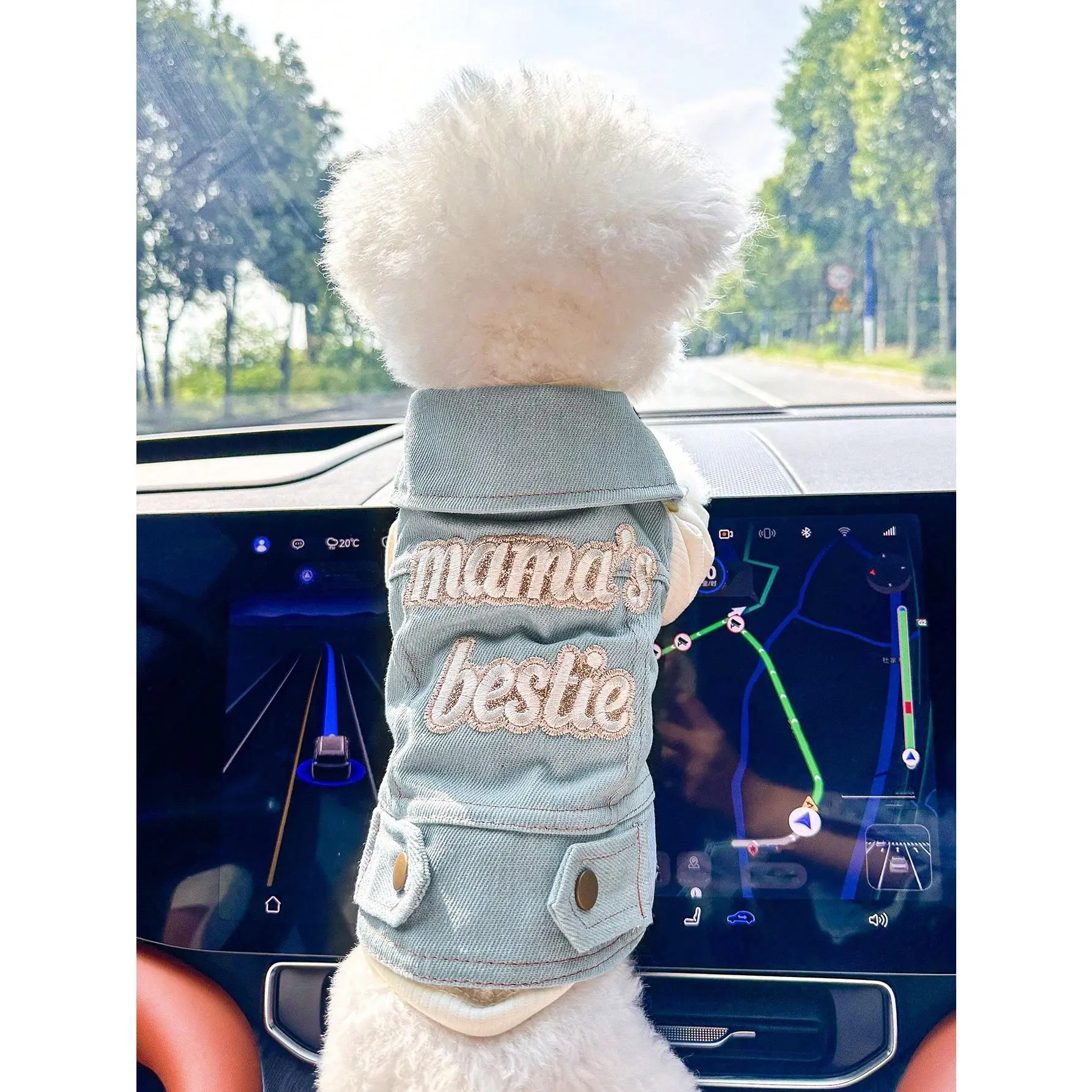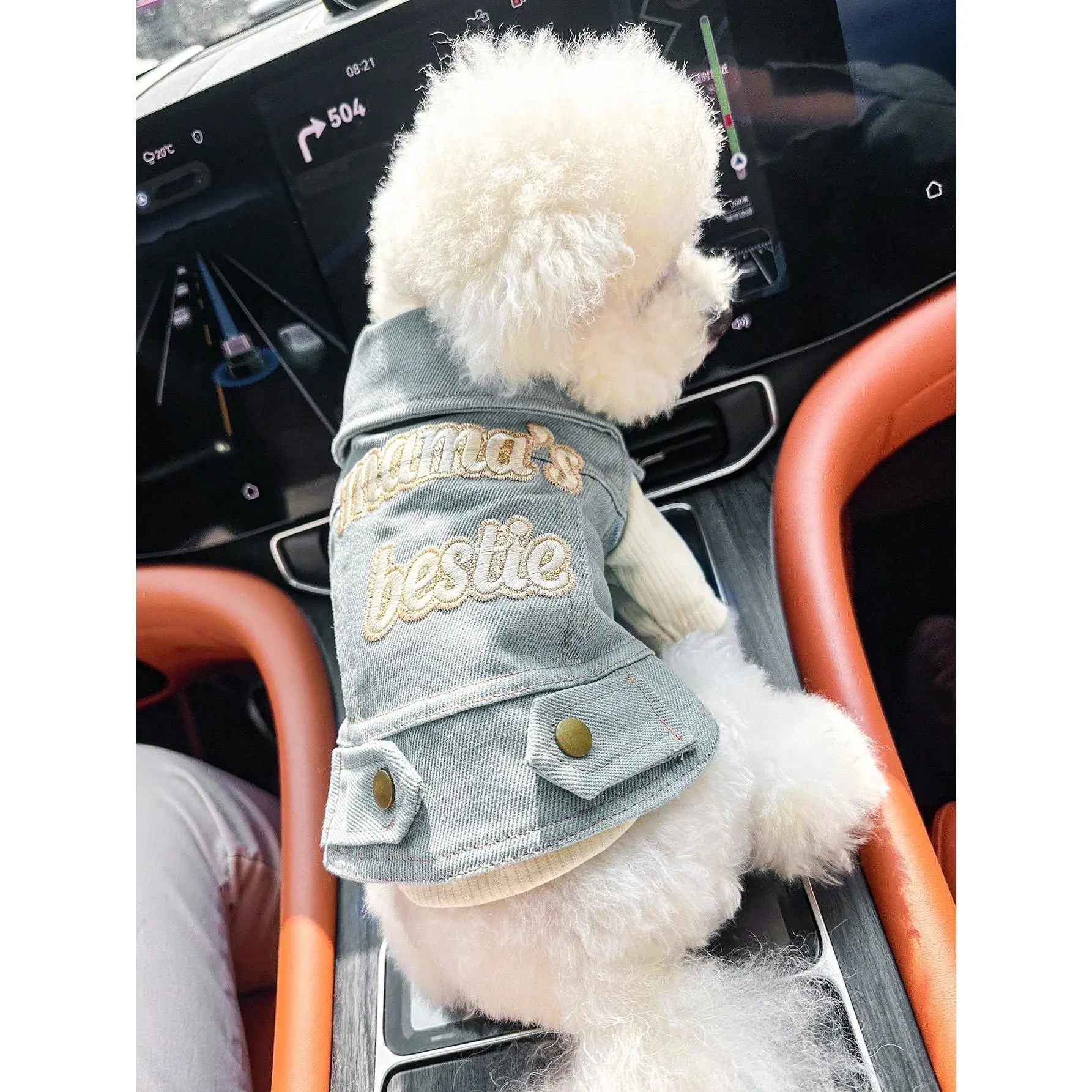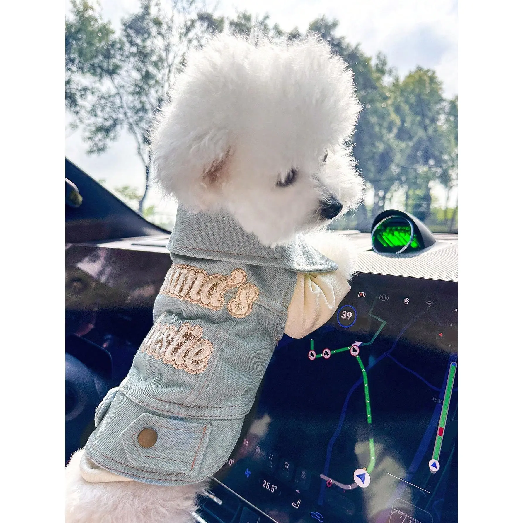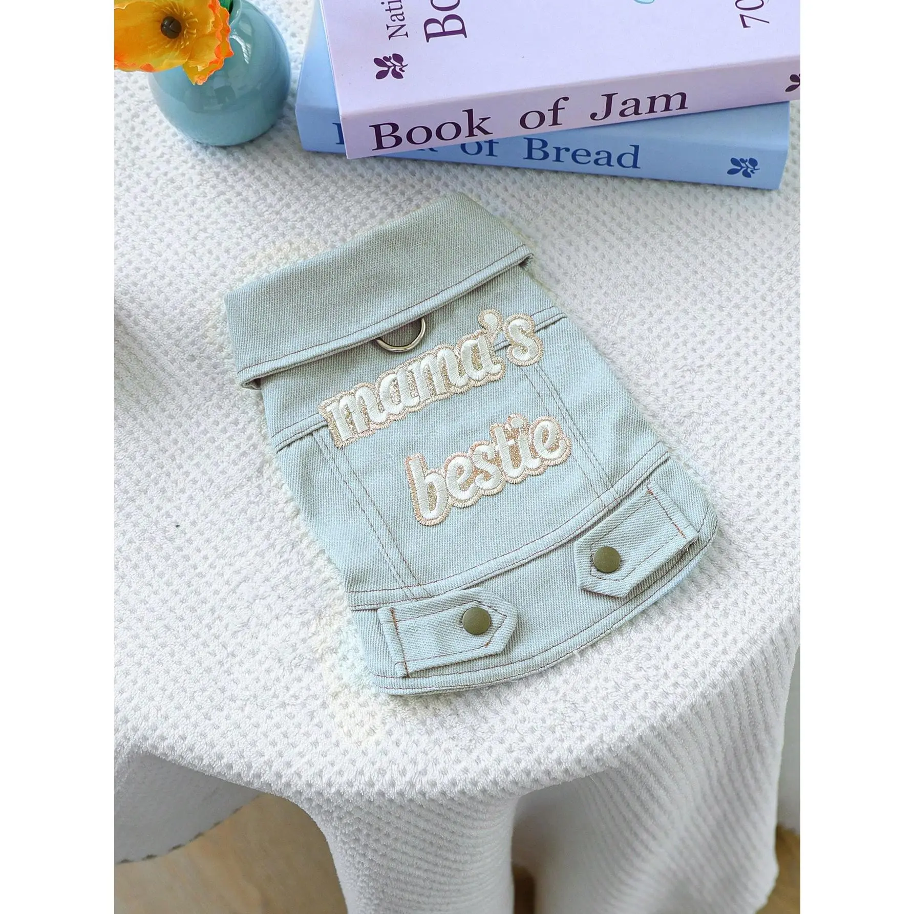 PETSIN 1pc Universal Pet Dog "Mama's Bestie" Cute & Fashion Embroidery Pattern Casual Pullover Jacket, Leash Attachable