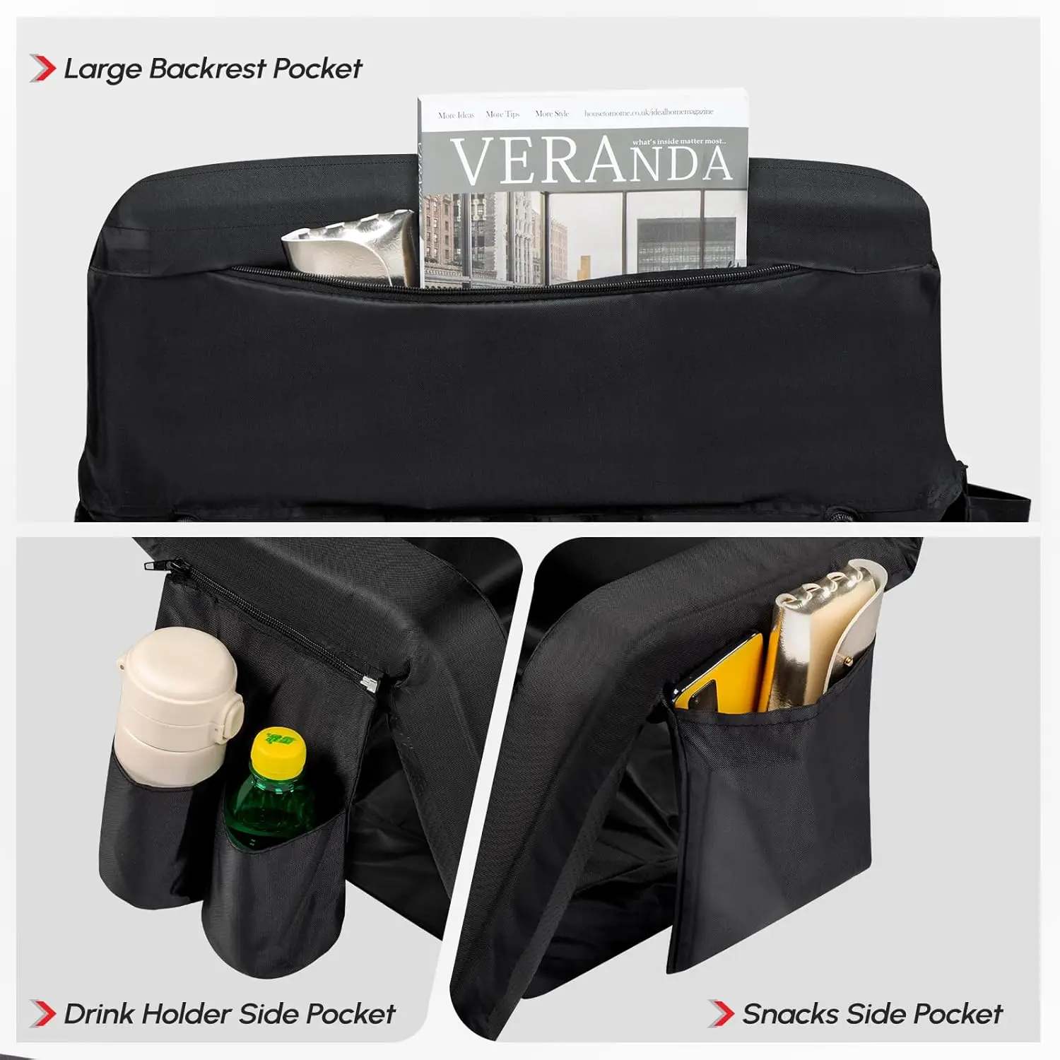 ·Backrest Pocket: Store large bags, books, and other items.