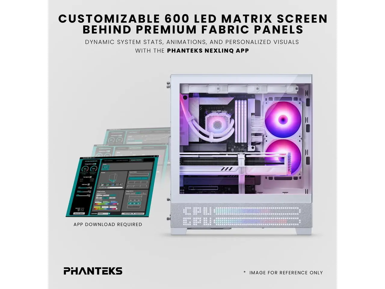 Phanteks XT View Matrix Mid-Tower ATX Gaming PC Case, 600-LED Matrix Display, Tempered Glass Front & Side Panels, USB-C 3.2 Gen2, 3x D-RGB Fans Included, Rear-Connector Ready, Grey White