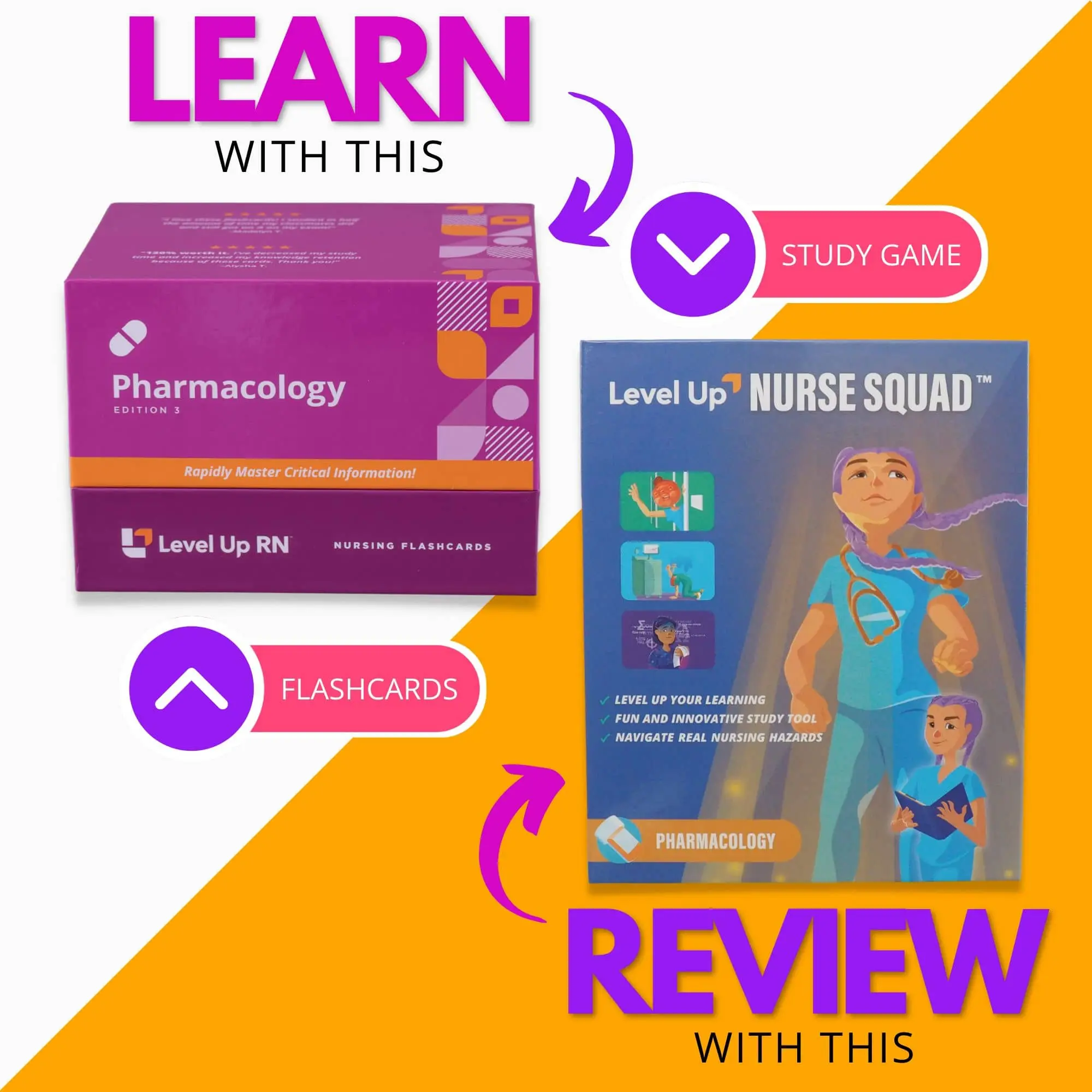 But wait, there’s more fun! Enter Level Up Nurse Squad: Pharmacology, a nursing card game designed by educators who know exactly what you need to master. This isn’t just any game—it’s packed with tough questions that challenge your knowledge and make review sessions way more engaging. Nail this game, and you’ll know your pharm stuff inside and out.