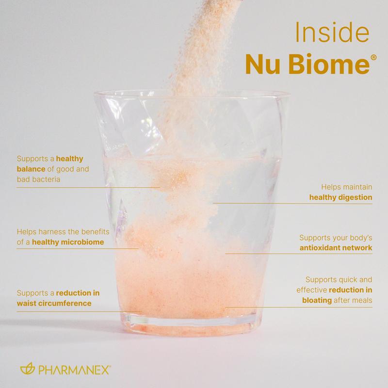 Experience the benefits of Pharmanex Nu Biome and support your gut health with a powerful blend of pre- and postbiotics, caffeine, and antioxidants. Enjoy the convenience of a delicious powder mix-in that supports your daily wellness.