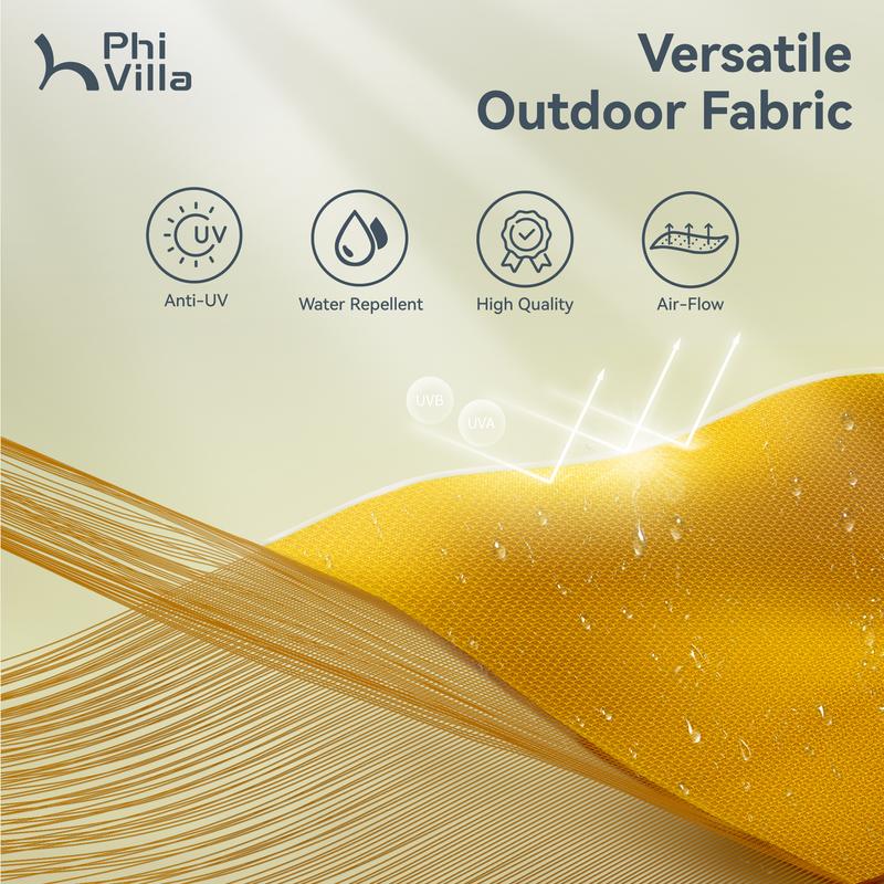 PHI VILLA double sided outdoor umbrellas canopy are made of 100% polyester fabric that can be water-resistant, breathable, long lasting, fade resistant, UV protective and easy to clean