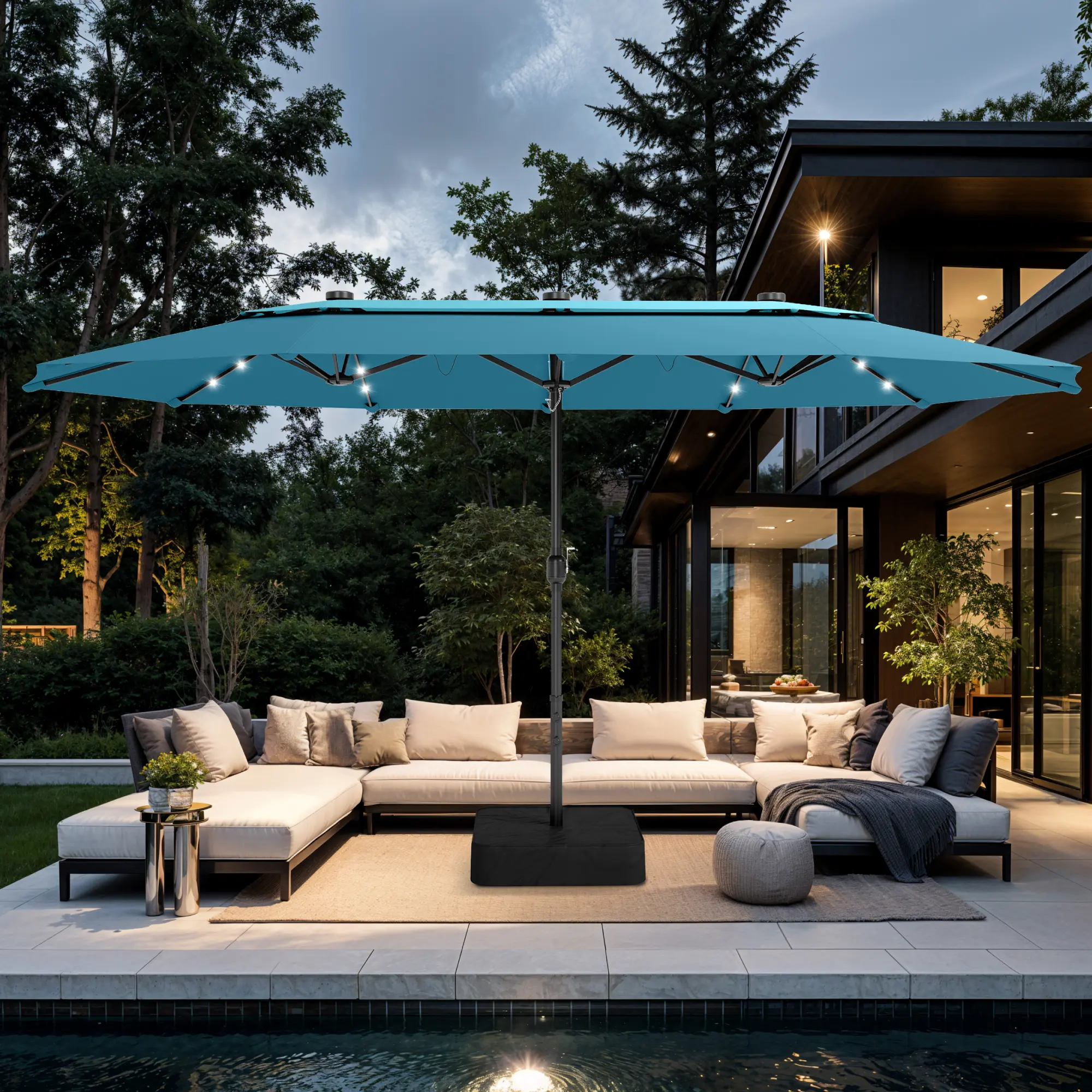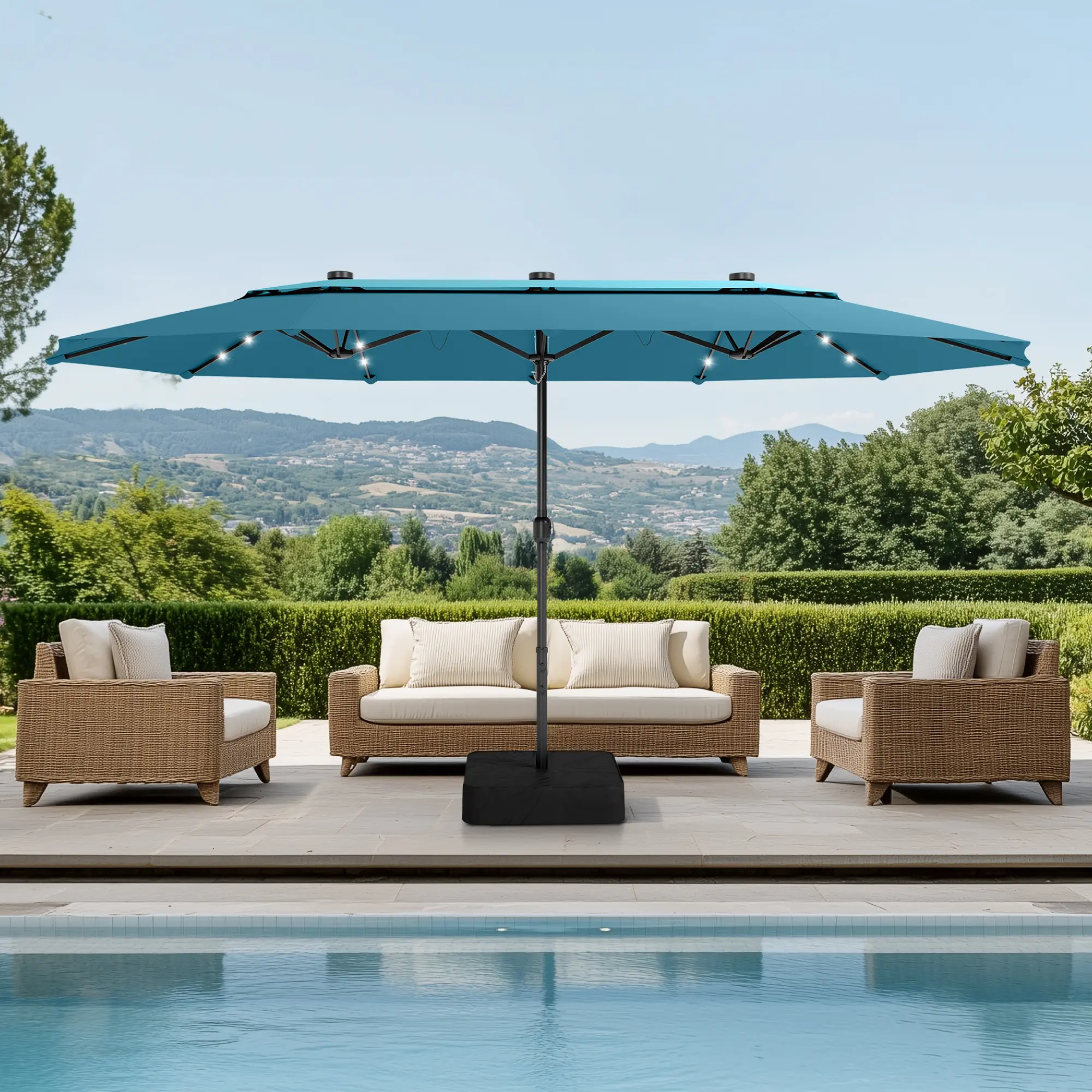 Turquoise, 15ft Umbrella With Solar Light