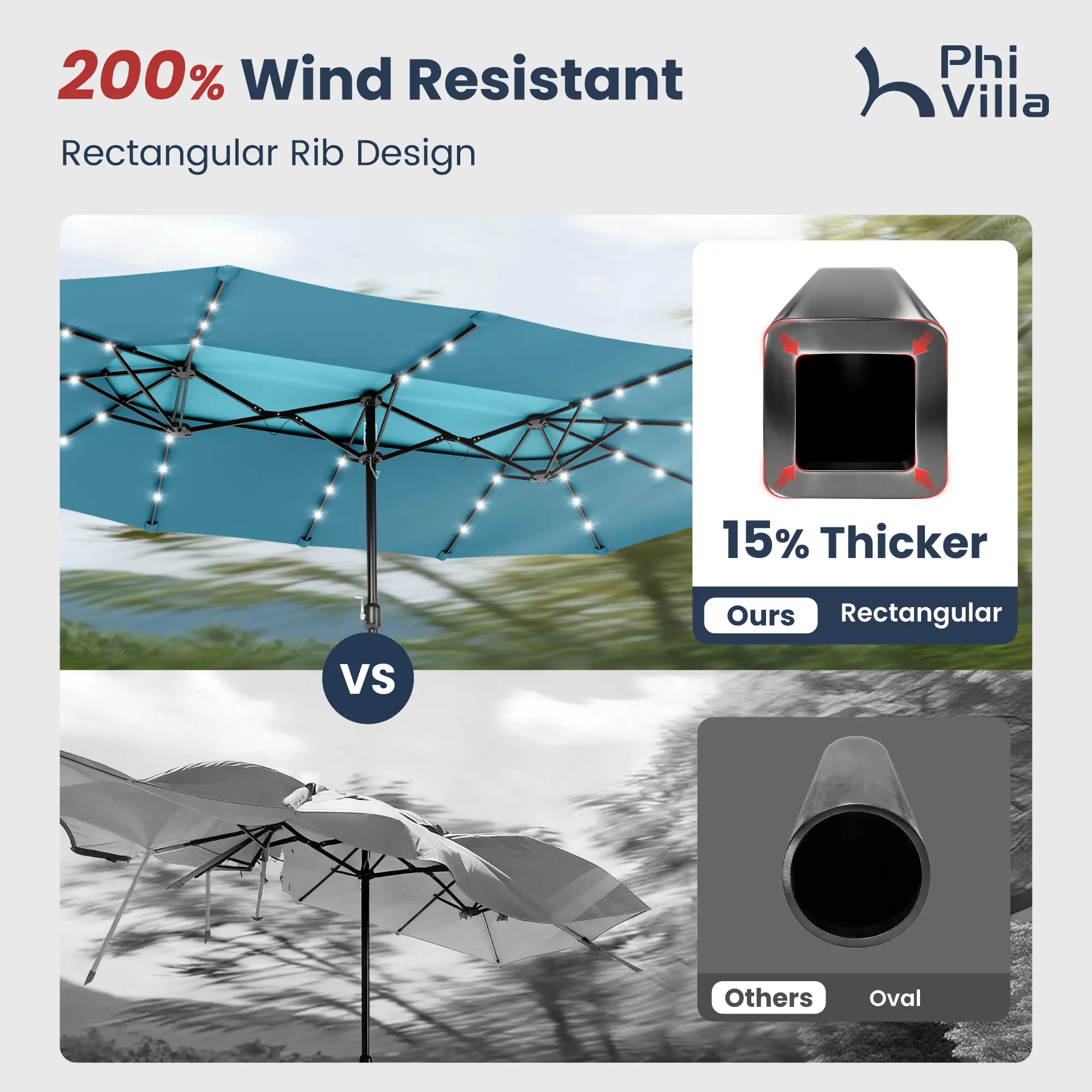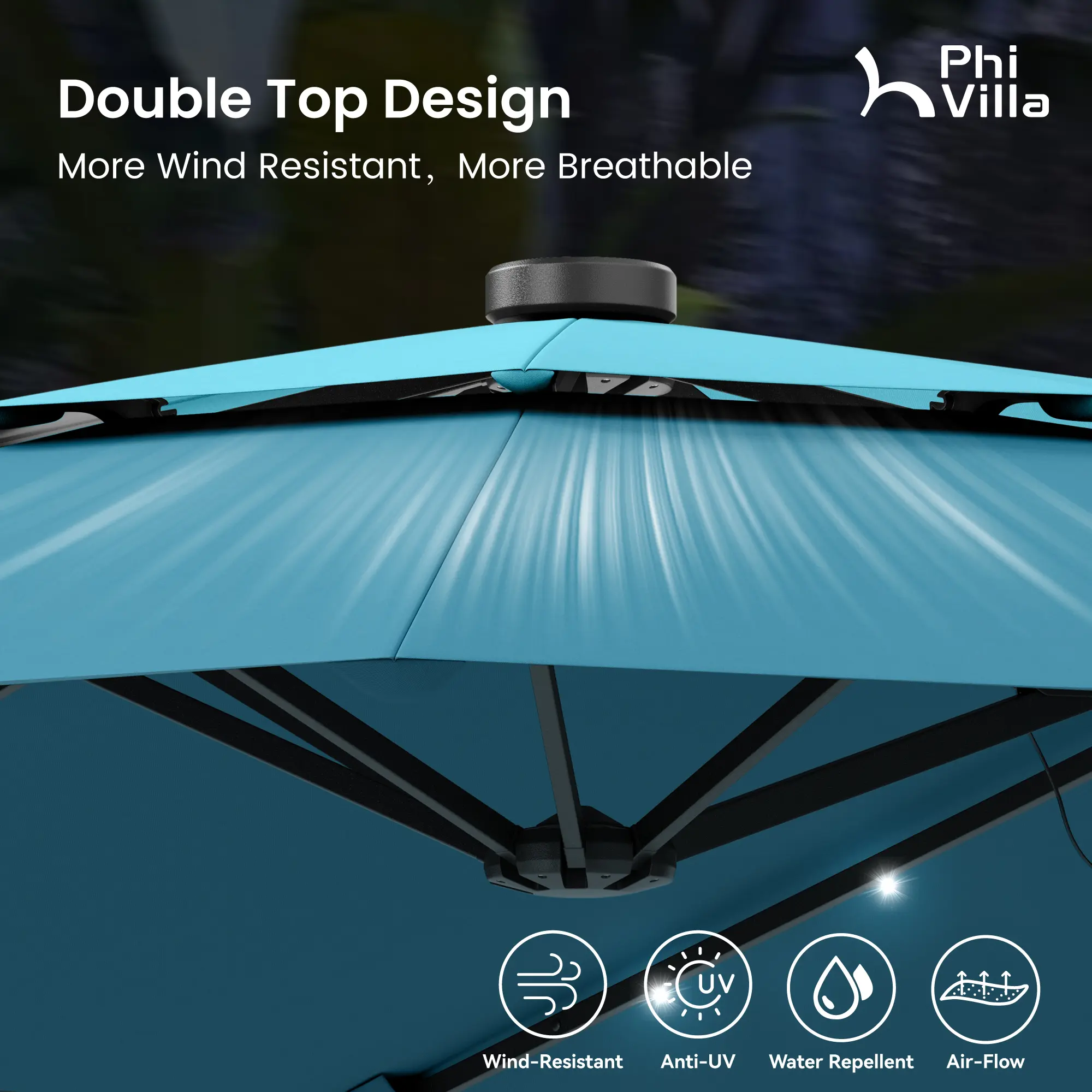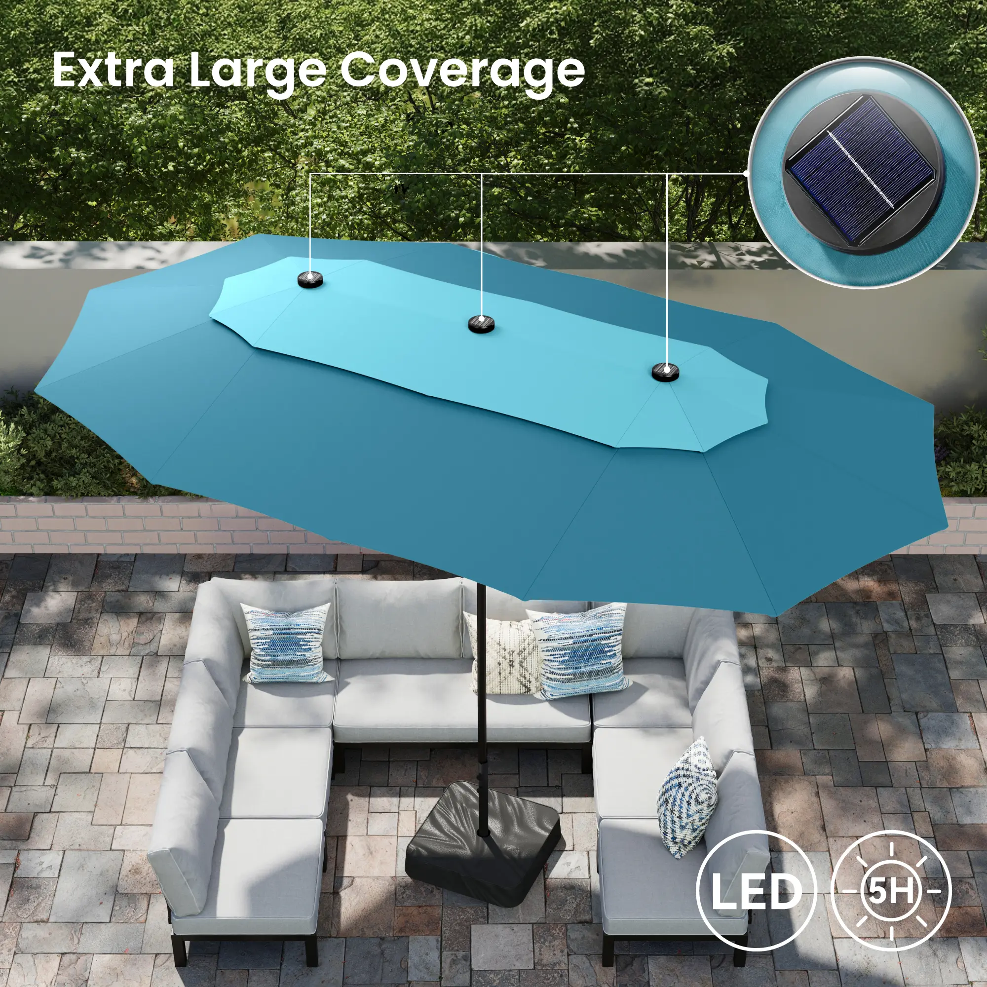 Cyanic, 15ft Umbrella With Solar Light