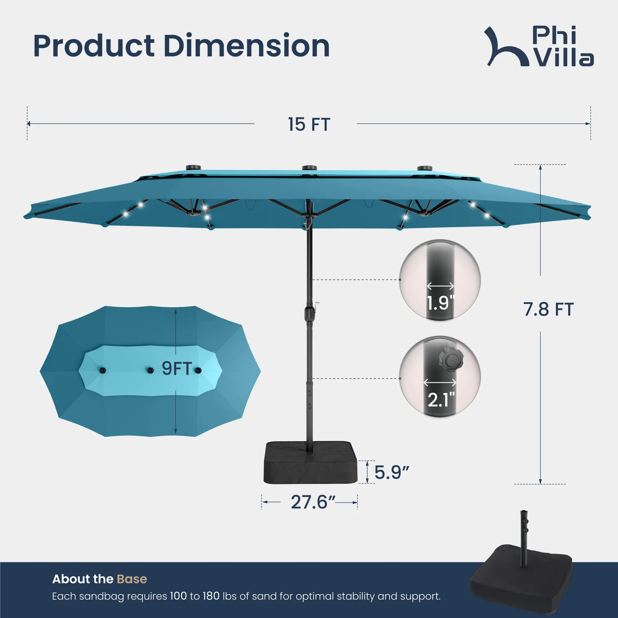 Navy, 15ft Umbrella No light