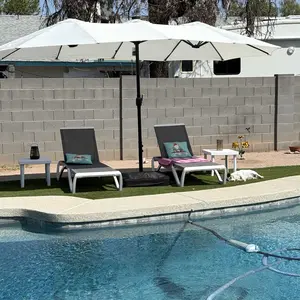Awesome umbrella! Easy set up and looks great. I love the lights and you can turn them on and off.