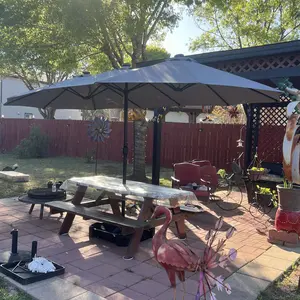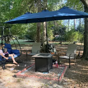 Got this umbrella and it honestly surprised me 🔥 Super sturdy, looks great on the patio, and was easy to set up. Once the base is filled, it stays nice and stable 💯 Perfect for the Florida sun ☀️ gives great shade. Definitely recommend 👌