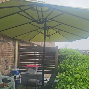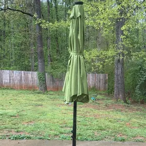 Received what appears to be a used product. Box was in great condition, but there was dead grass folded into the umbrella along with stains and at least one tear. I’m beyond disappointed and irritated that I can’t transport this product for a refund!!!