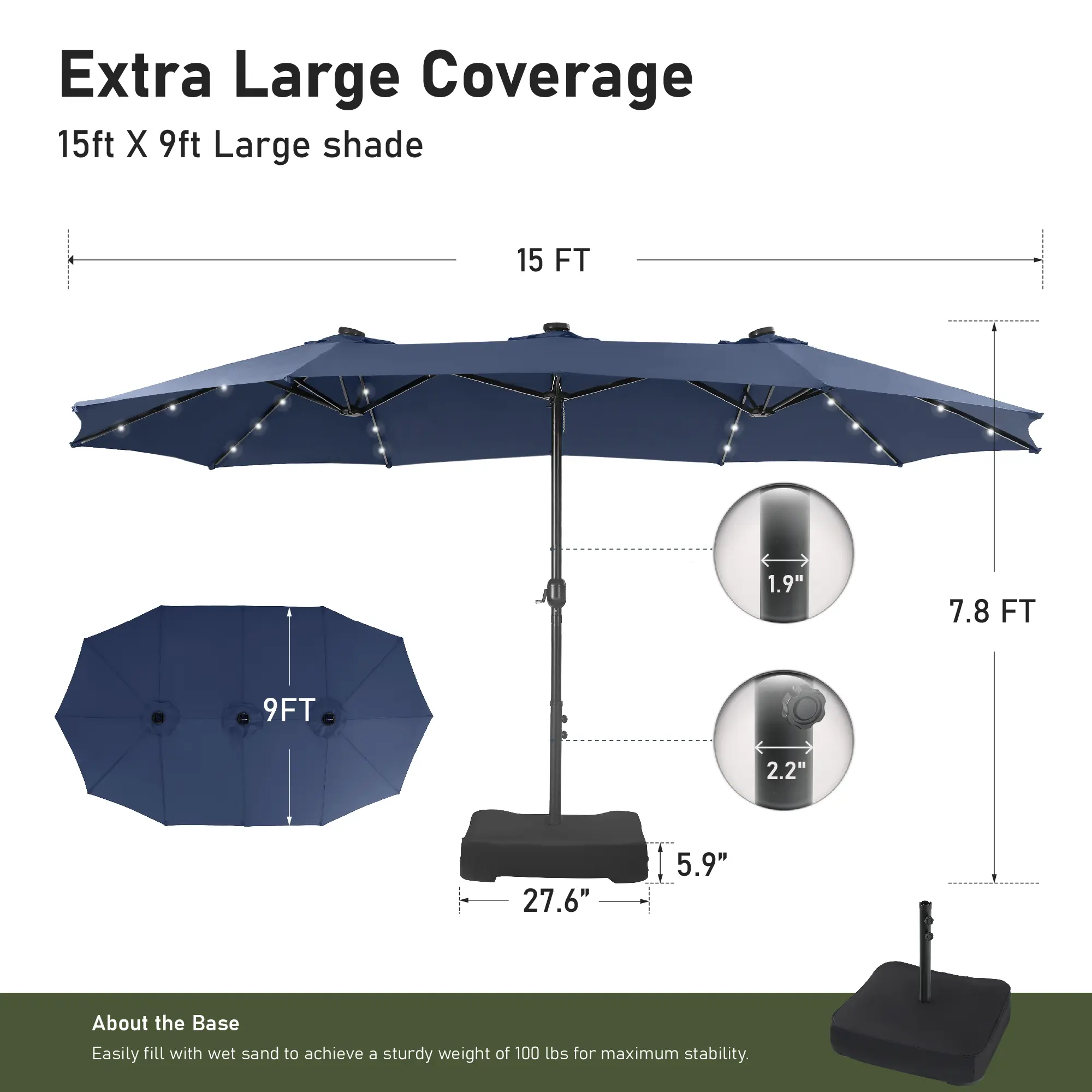 Navy Blue, 15 ft with solar light (with base)