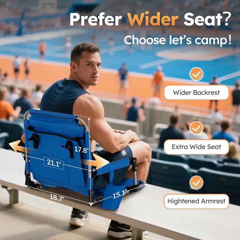 ·【Comfy Seat】The cushioned seat and backrest ensure comfort on bleachers, benches, or flat ground. Additionally, two concealed hooks on both sides provide extra stability. The armrest allows you to take a short break. A Great comfortable seat for bottom and back support.