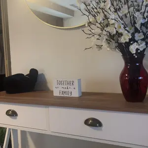 I’m in love with this entryway table! Took about an hour to put together. Easy with the directions, and the end product is beautiful!