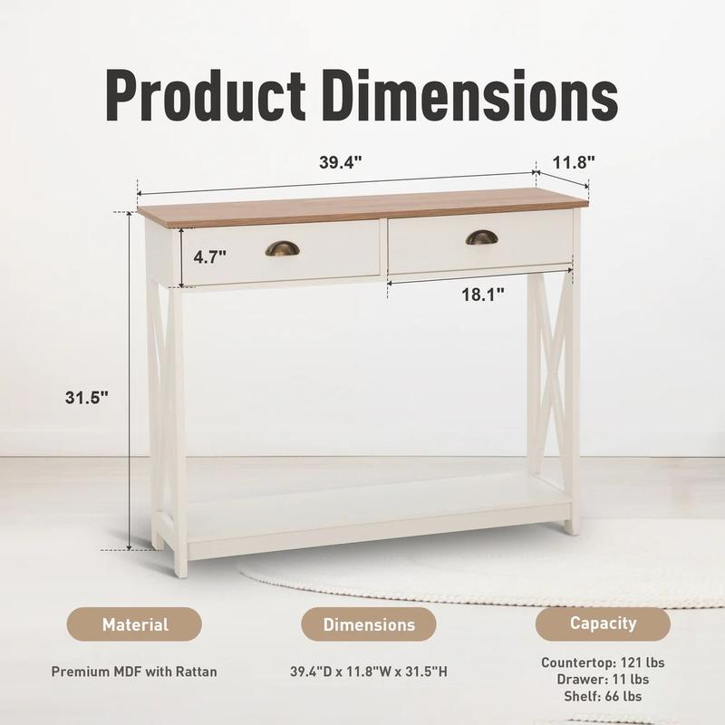 【Sophia & William】40" Long Farmhouse Console Table, X-Design Entryway Table for Hallway & Living Room