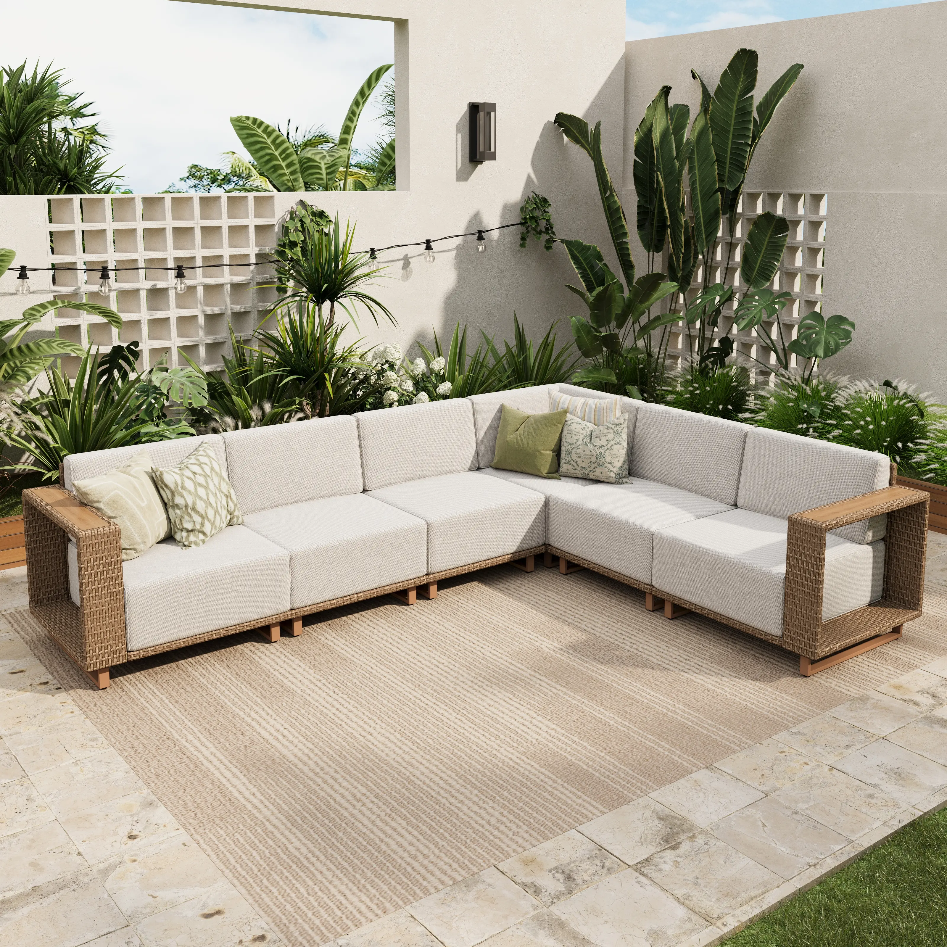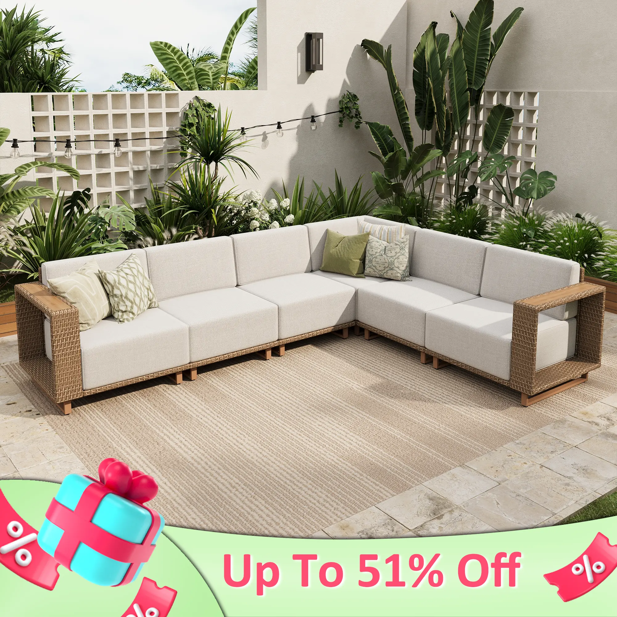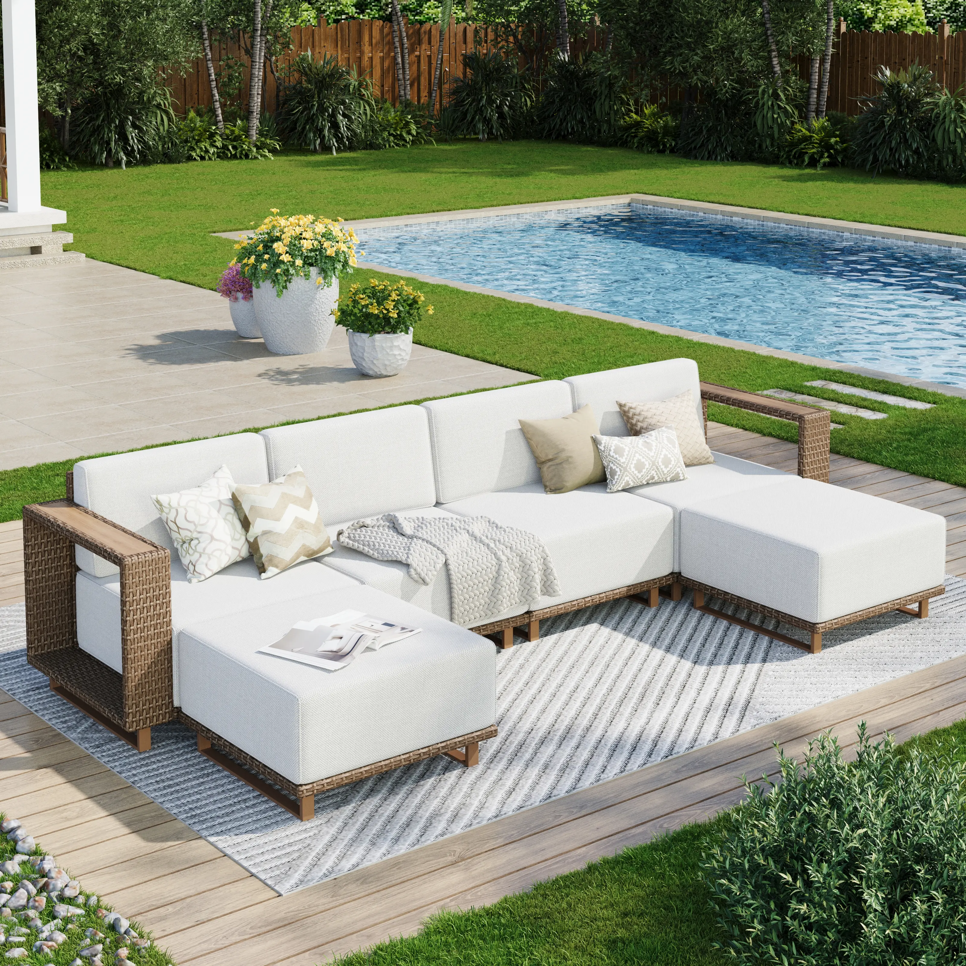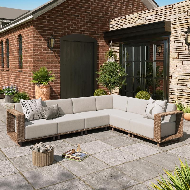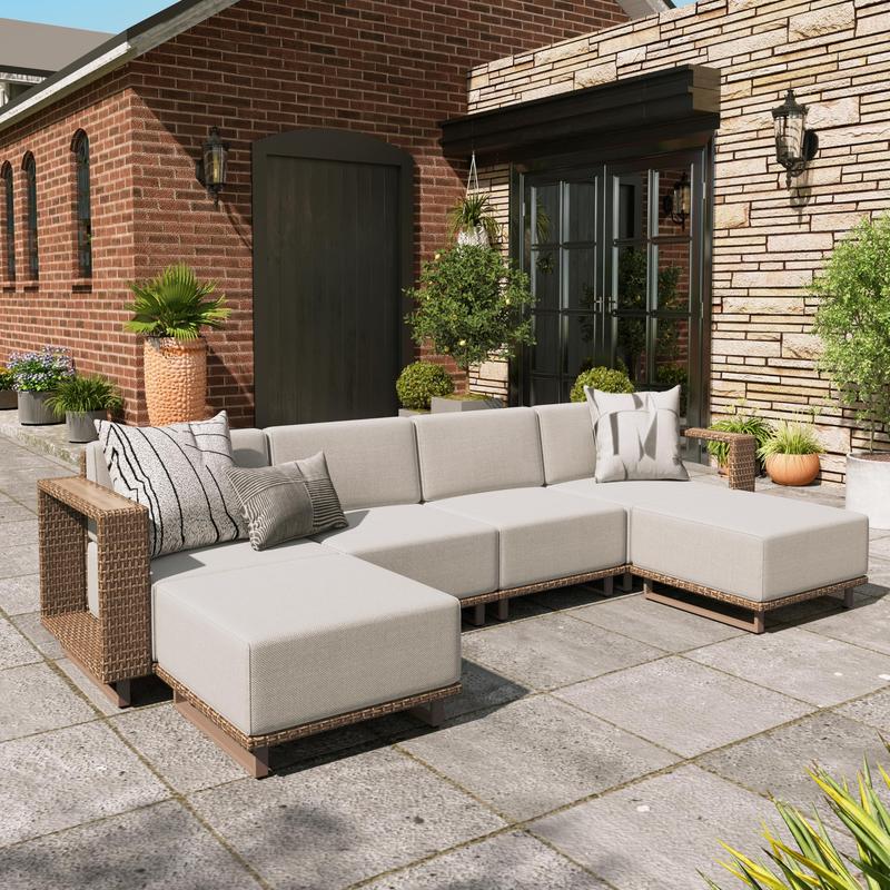 Enhance your outdoor patio space with the PHI VILLA Outdoor Patio Furniture Set, featuring a stylish rattan wicker sectional sofa and ottoman. This set is designed for garden use, providing a comfortable and stylish seating option for your outdoor living area.