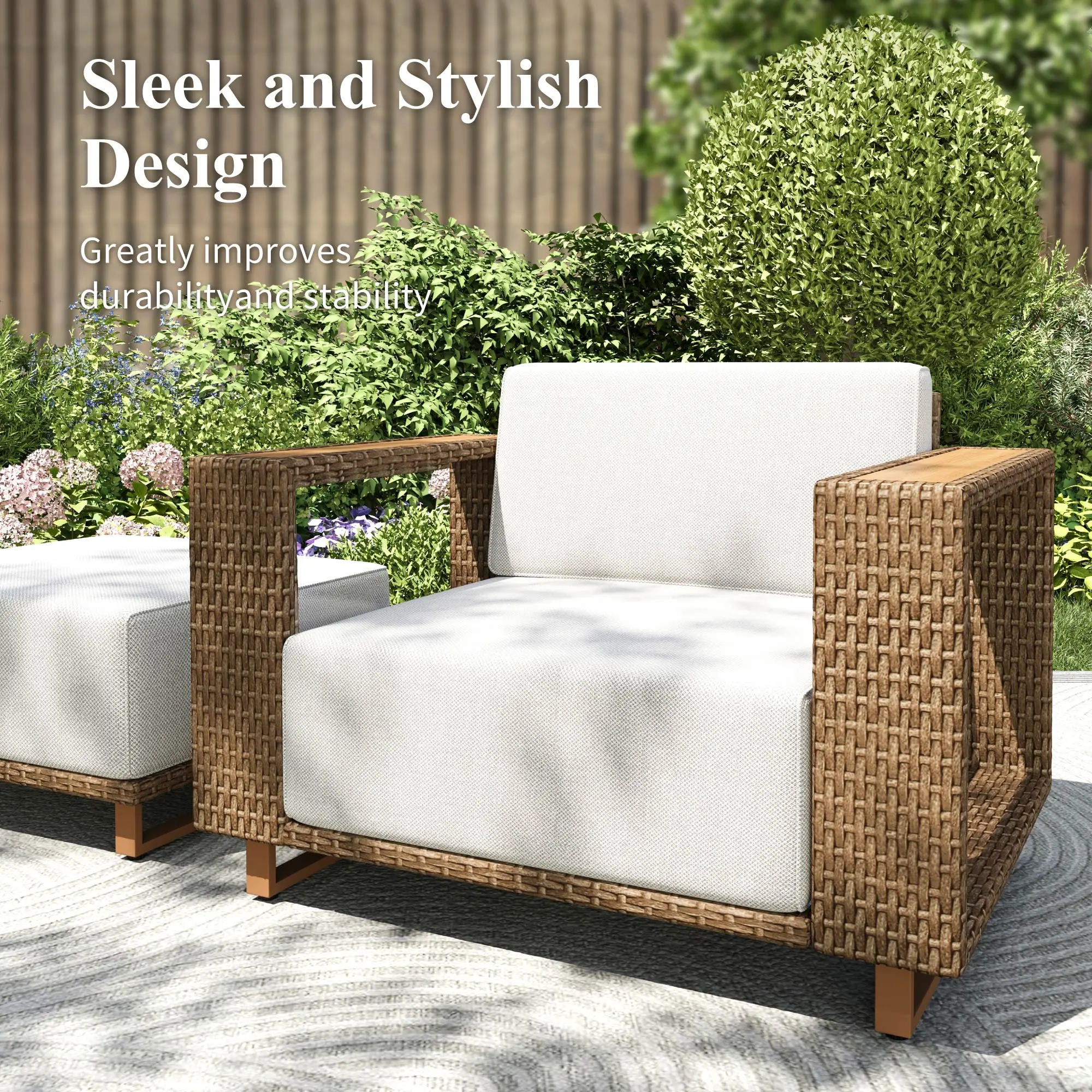 ·Durable and Stylish: The rattan wicker material is designed for outdoor use, ensuring durability and a stylish look.