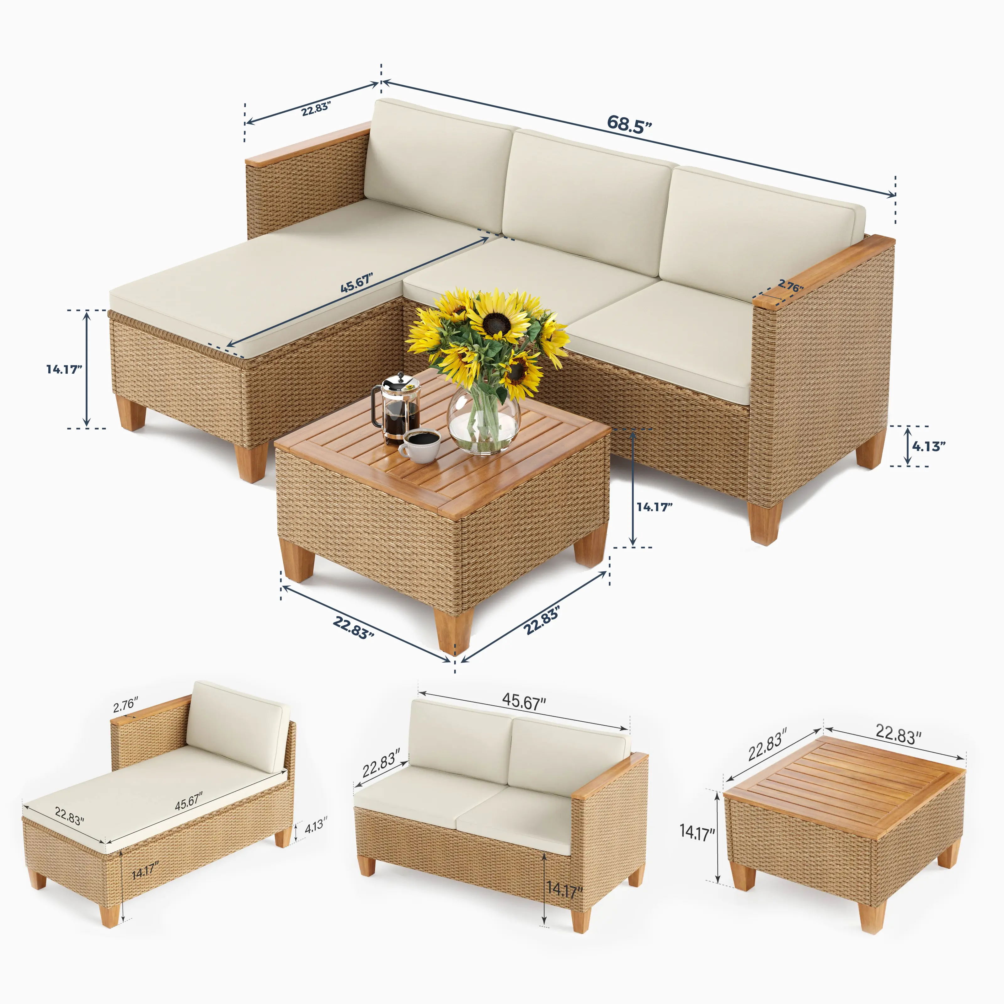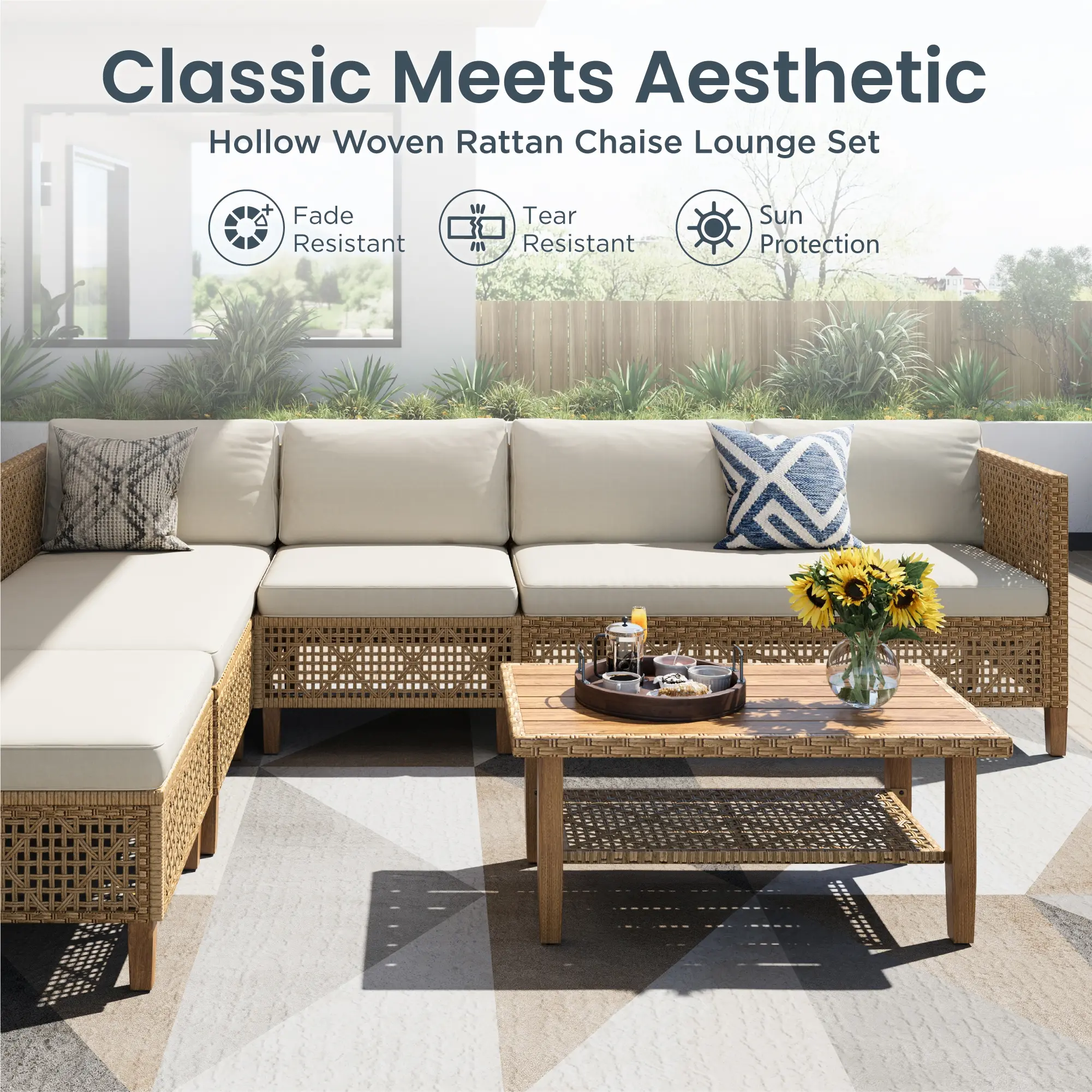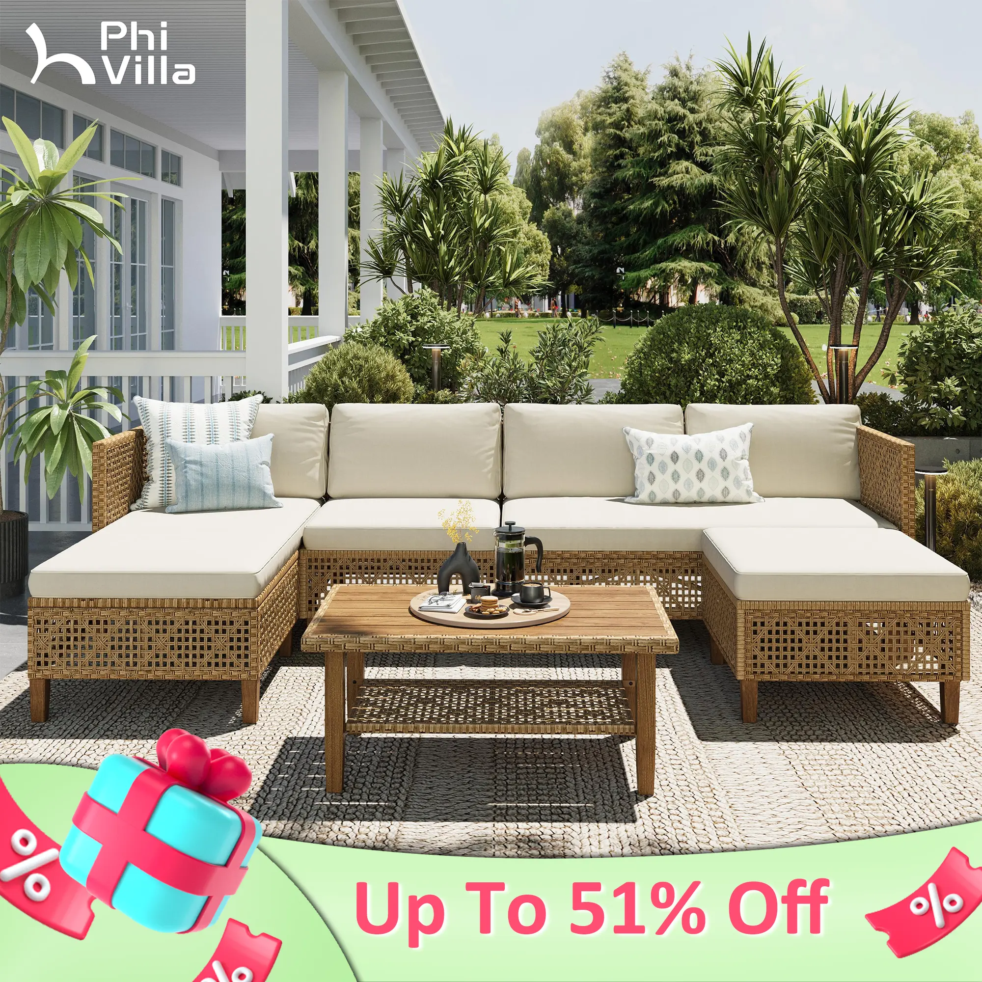 ·Boho-Inspired Wicker Design: Crafted with handwoven PE rattan in an elegant diamond pattern, this L-shaped outdoor sectional brings a chic bohemian touch to your patio, garden, or balcony.