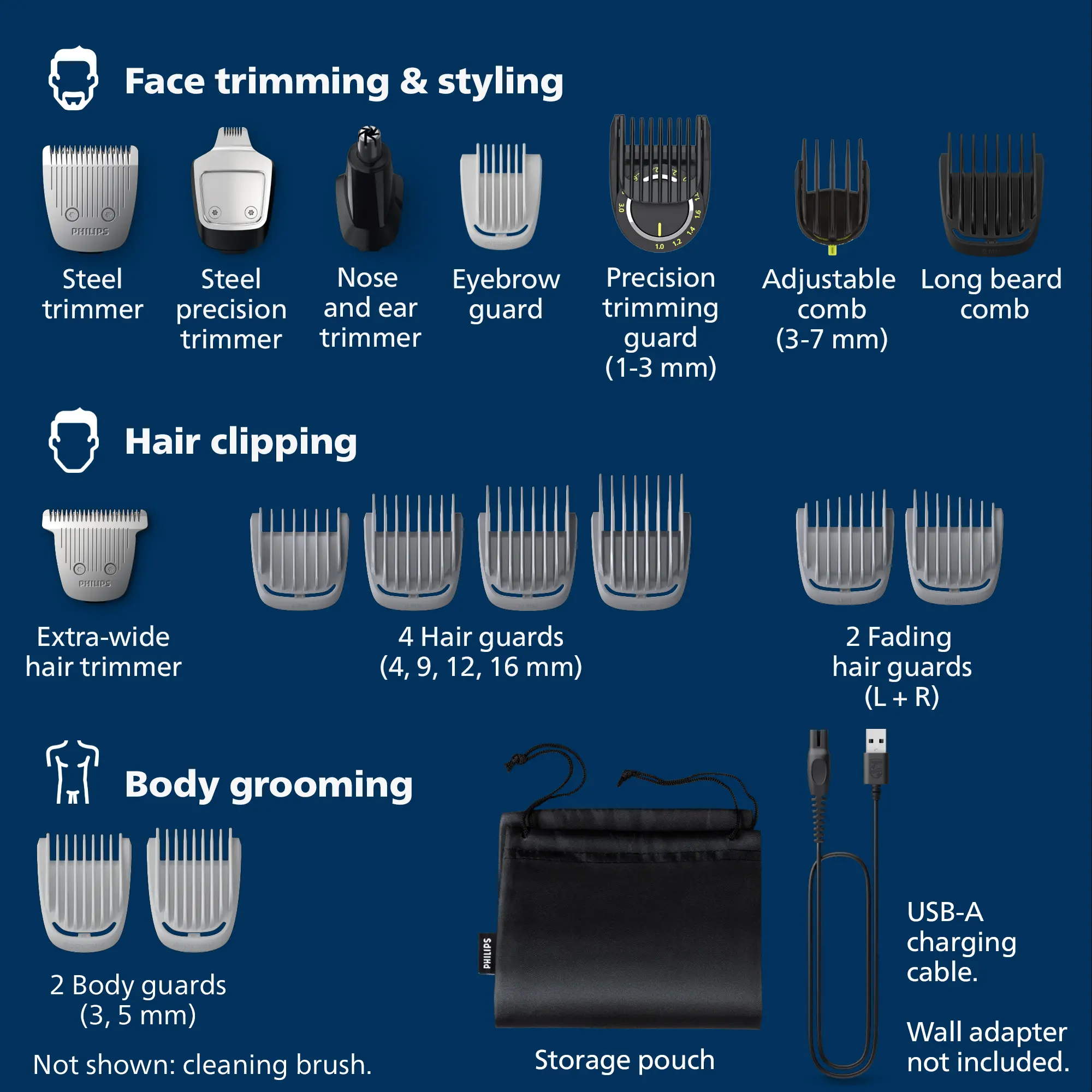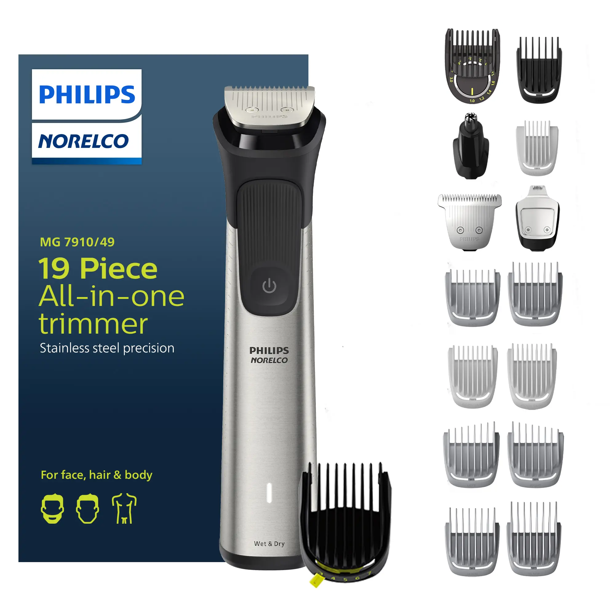 ·19-Piece kit: The Philips Norelco Multigroom 7000 provides stainless steel precision with 19 tools and accessories for a perfect beard, hair and body trim.