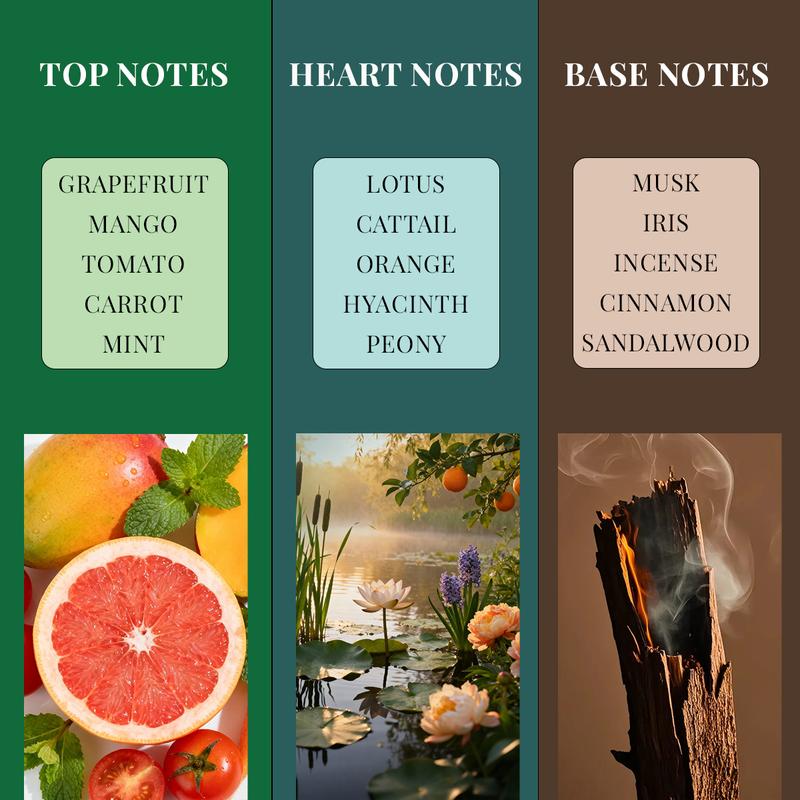 ScentSandalwood,Mint,Cinnamon,Incense,Iris,Peony,Hyacinth,Orange,Cattail,Lotus,Carrot,Tomato,Mango,Musk,Grapefruit