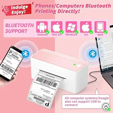 [We Made it] Now, our 241BT bluetooth thermal label printer supports to Phones/Mac/Windows/ to connect bluetooth directly!(Bluetooth supports Android/iOS system & MAC/Win 10 and higher versions, but does not support systems below Win 10).Besides,if you enjoy to choose USB connect,this thermal printer machine support all computer systems/Google.Warm Tips : All bluetooth should be connected via free Labelife editing app.