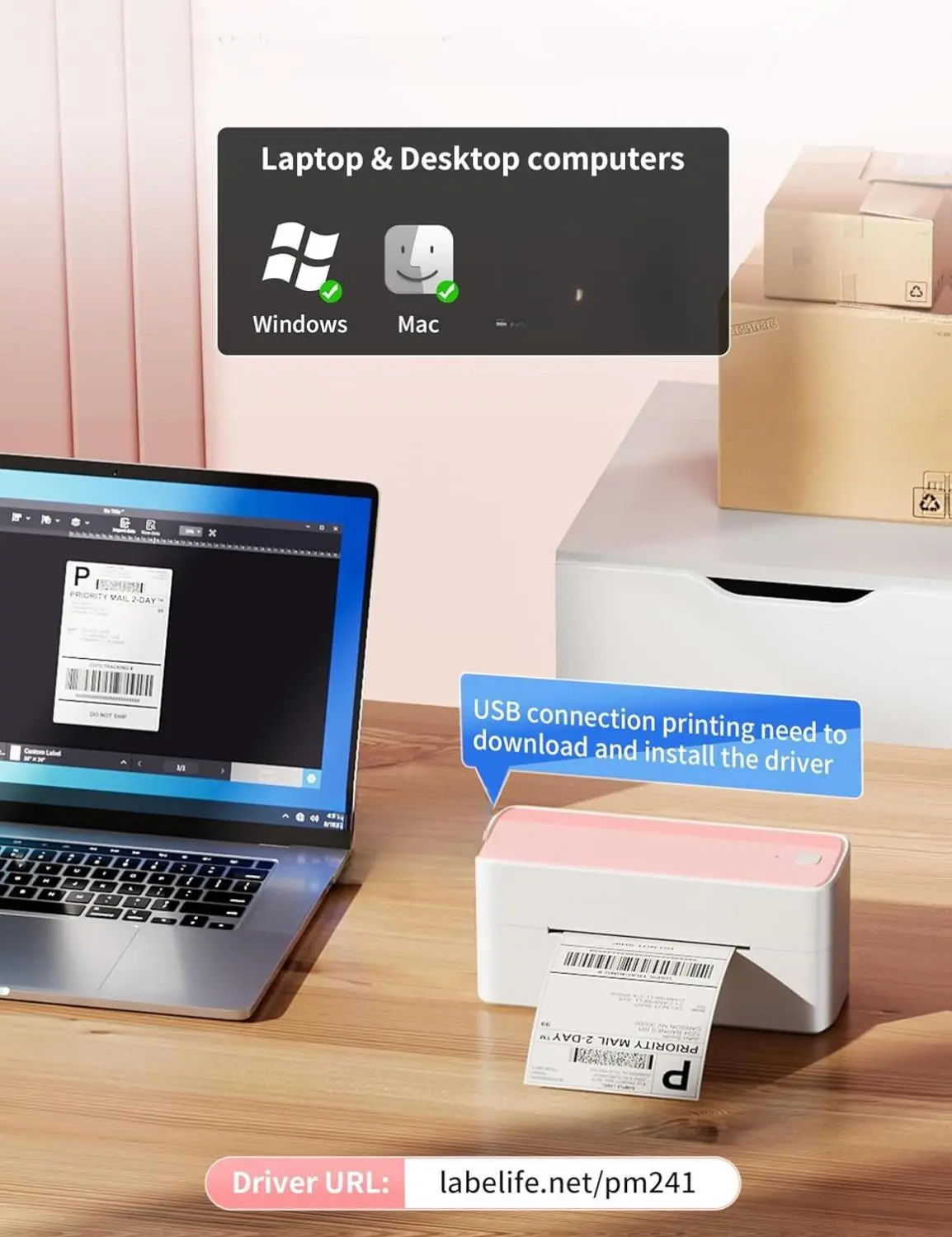 labelife.net/pm241 and connect via USB. The 241BT printer is not directly