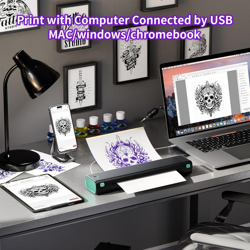 ·HIGH COMPATIBILITY WITH MULTIPLE DEVICES: With its compatibility with smartphones, tablets, laptops, and desktop computers, you'll be able to create stunning tattoo stencils in 1 minute. Phomemo tattoo transfer printer works with various systems, catering to the needs of both tattoo enthusiasts and beginners.