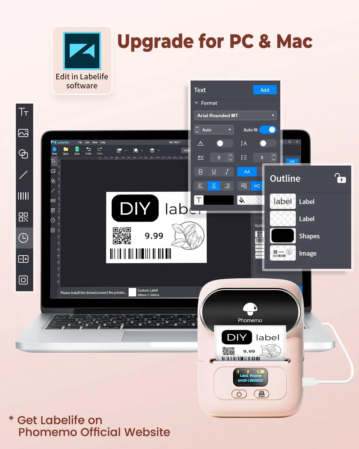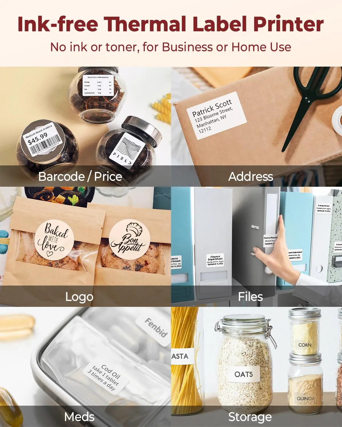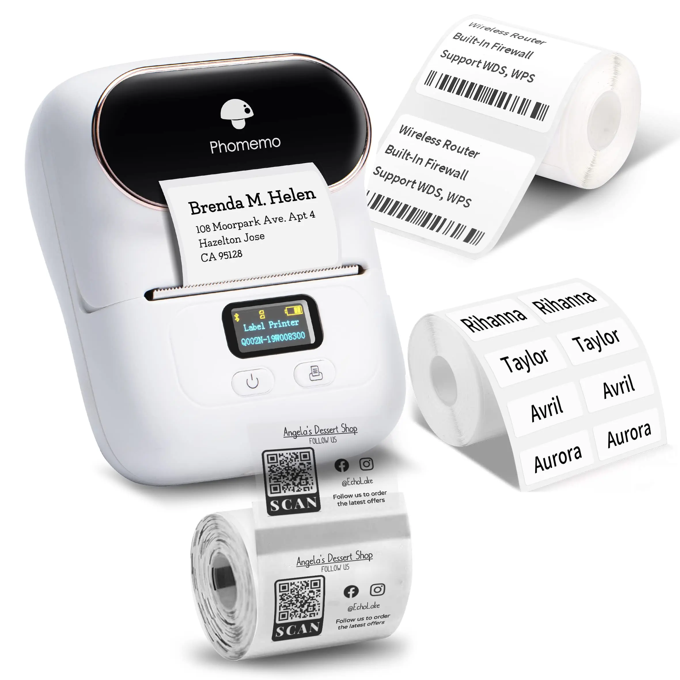 ·【Capable to Print Anything on Labels】This portable label maker can print labels in WIDTH of ¾'' to 1⅞'' (20mm-50mm), maximum LENGTH of 3⅛''(80mm): text, picture, QR code, barcode label, product label, address label, ingredient label, price label, clothing label, jewelry label, etc.Phomemo Label Printer supports batch printing.