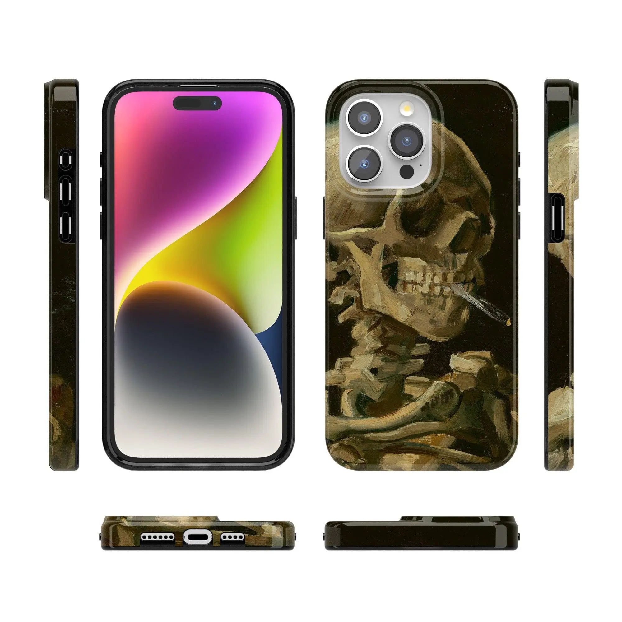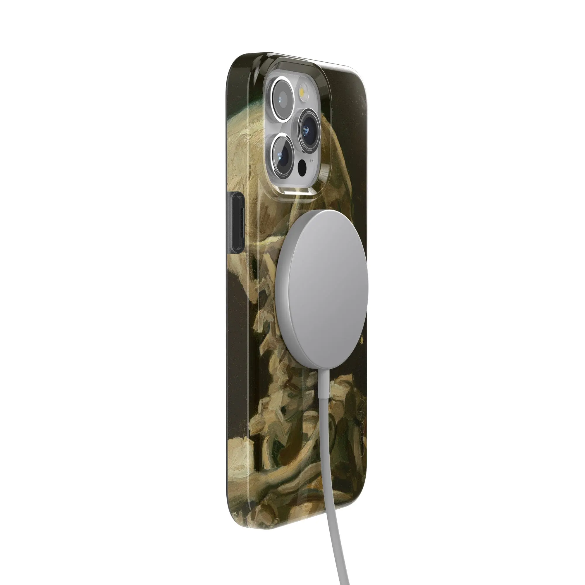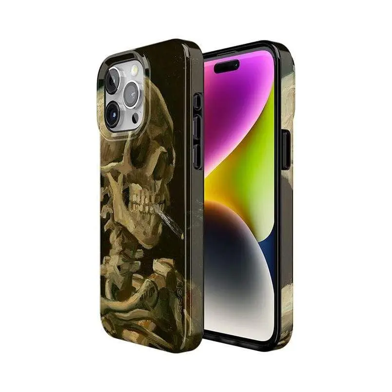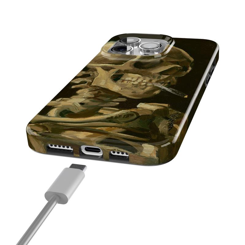 Admire Van Gogh's "after hours" masterpiece, Head of a Skeleton with a Burning Cigarette, with this limited edition Casely x Van Gogh Museum skeleton phone case.