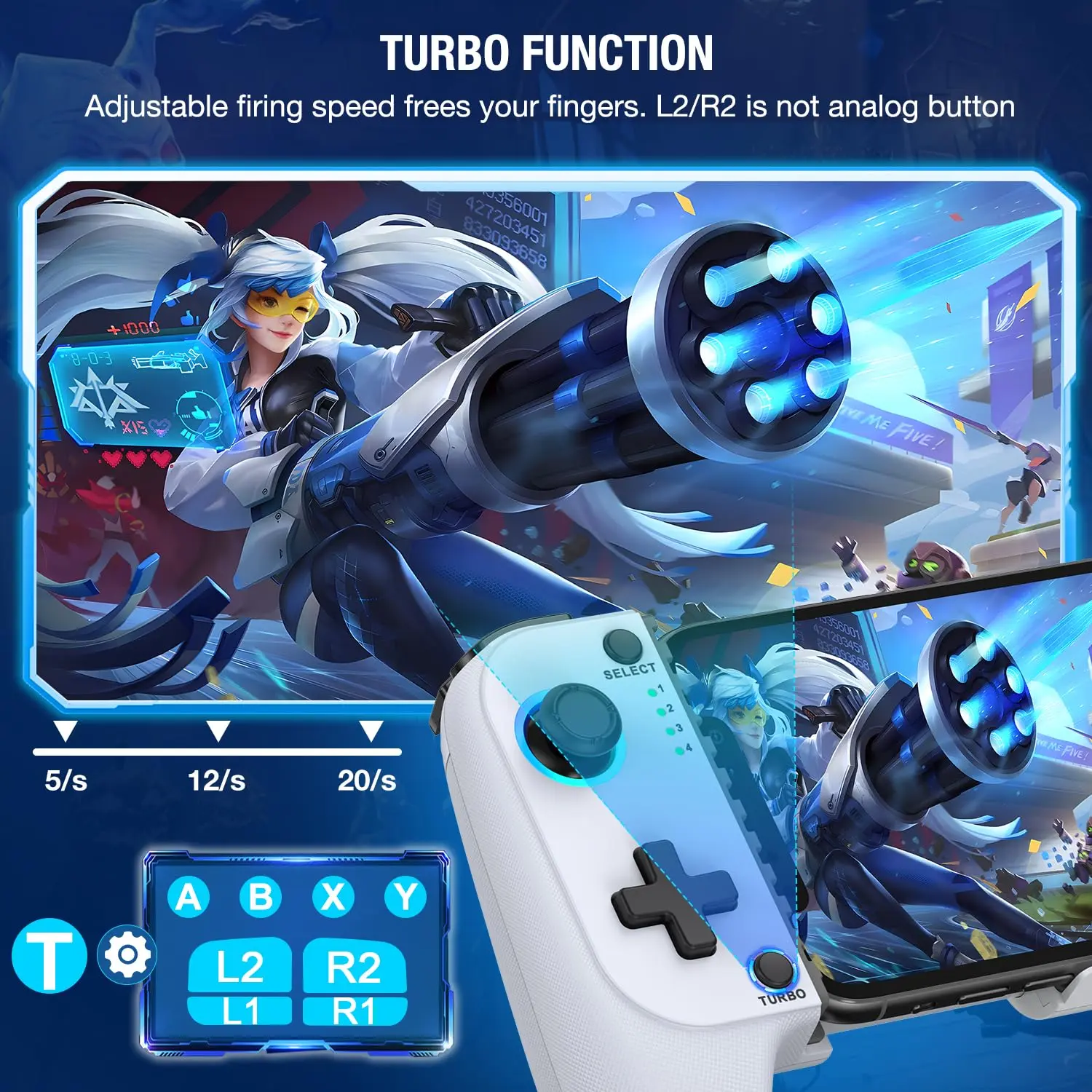 3-LEVEL TURBO FUNCTION & DUAL VIBRATION -- Portable mobile controller has three speeds per second. You can set Turbo + A/B/X/Y/L/ZL/R/ZR buttons to easily win in and fighting . Long press the TURBO button for 5s can clear all buttons TURBO function. Dual vibration to enhance the immersion for the mobile gaming experience with our phone controller for Android