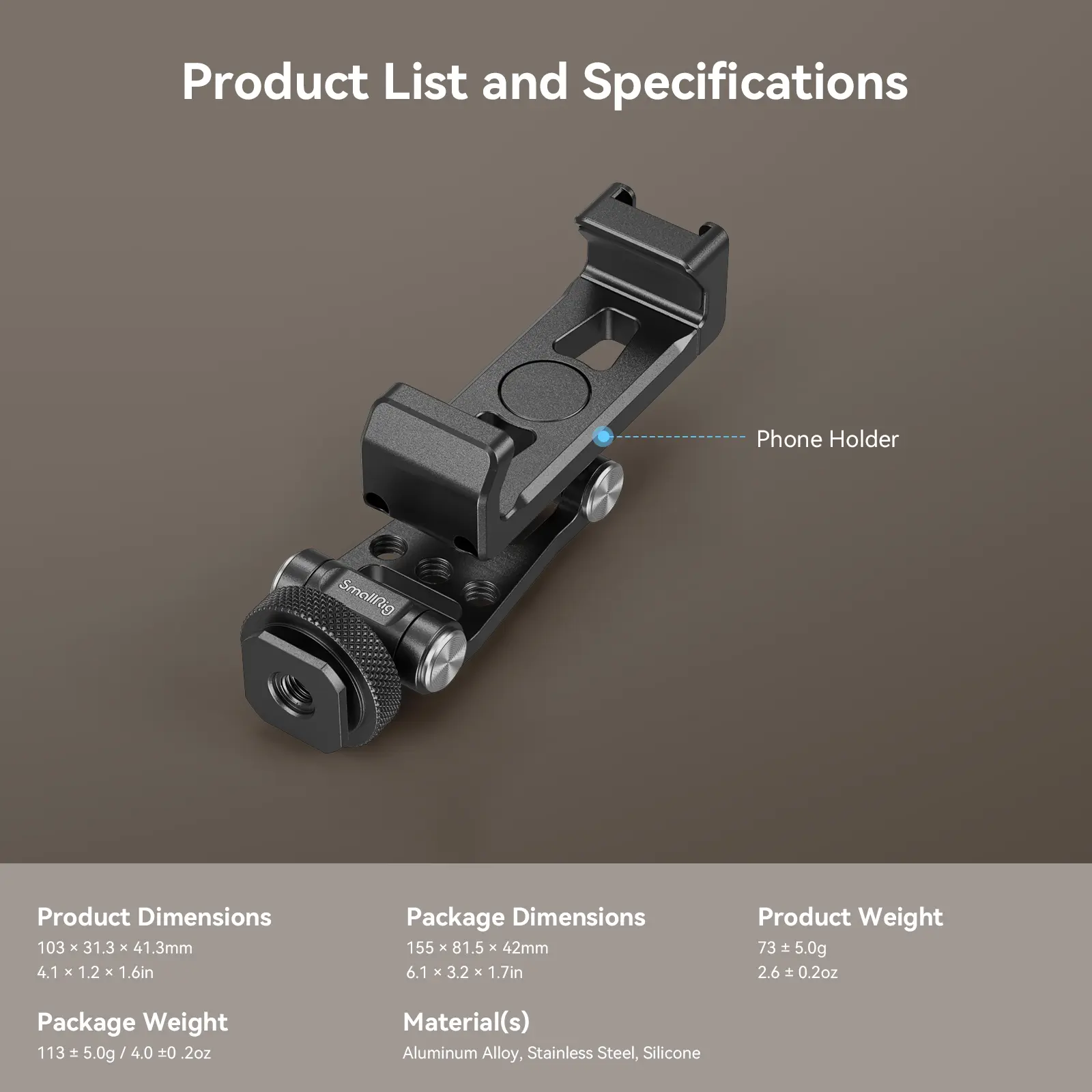 This is really well-made. Holds my iPhone Pro Max at the desired angle without moving, or slumping. My only desire was that the tripod mount had the two small holes On either side of the 1/4” threaded mounting hole that engage to keep it from rotating.