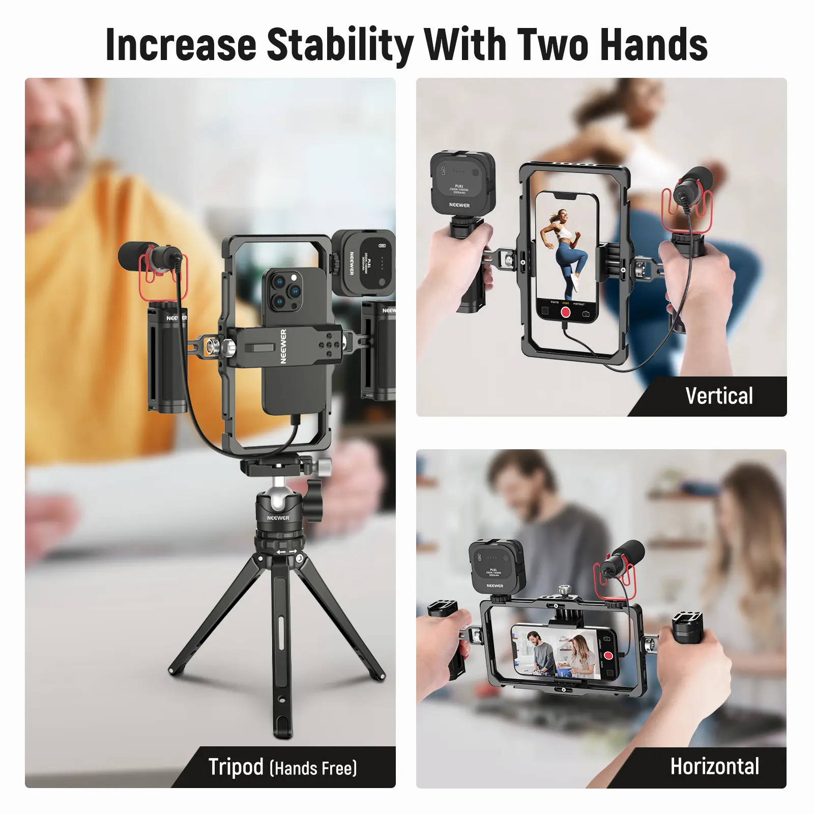 ·Vertical/Horizontal Mounting- 1/4" threads on the bottom and the sides can connect the cage to a tripod, desktop tripod, monopod, and handgrip in vertical or horizontal orientations, ideal for filming TikTok and Youtube footage.