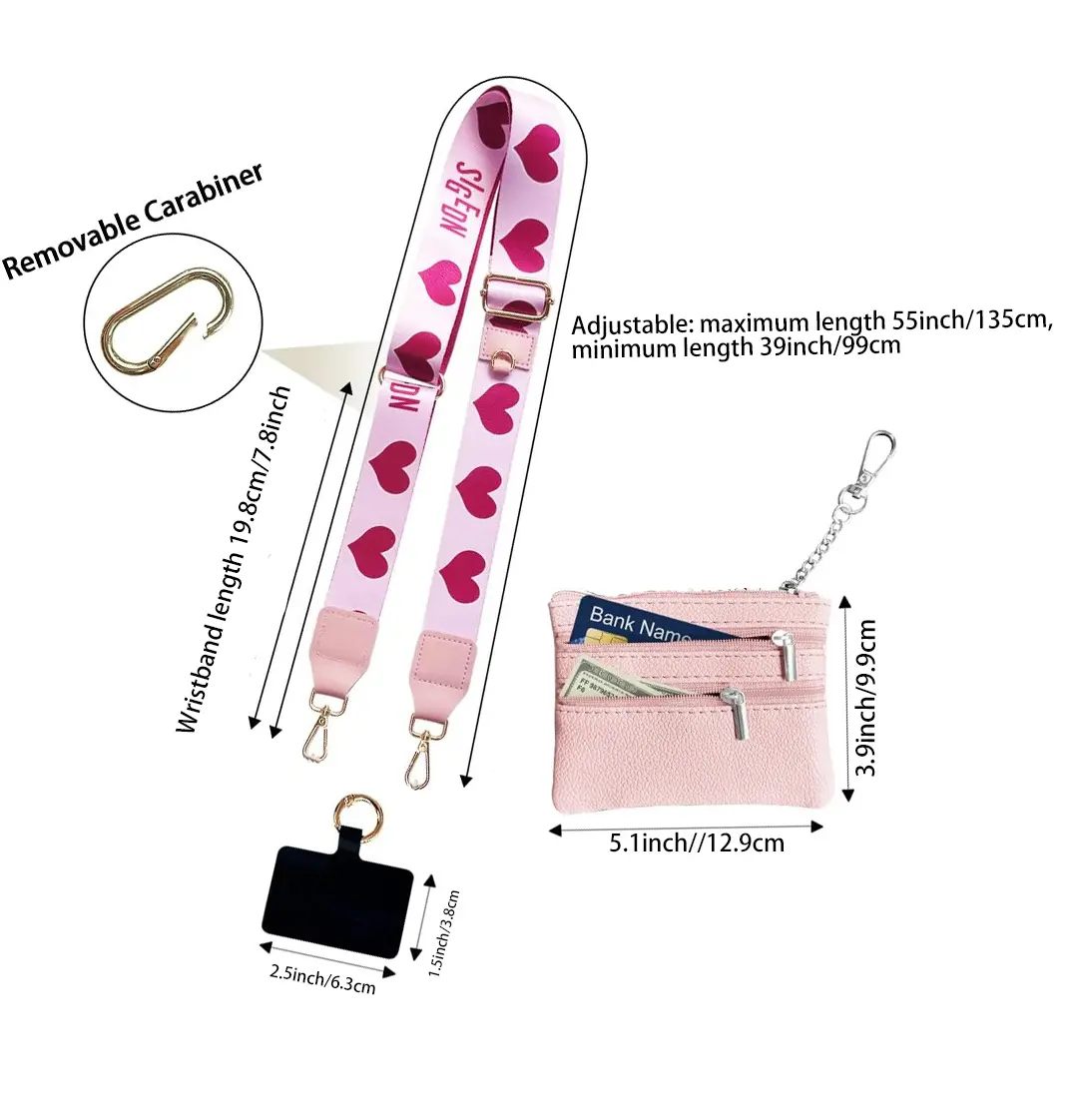 ·Versatile Design: Each set includes a cell phone card that fits most smartphone cases. The adjustable strap can range from 39'' to 55'', allowing you to easily switch between a crossbody chain and a bracelet for added convenience.