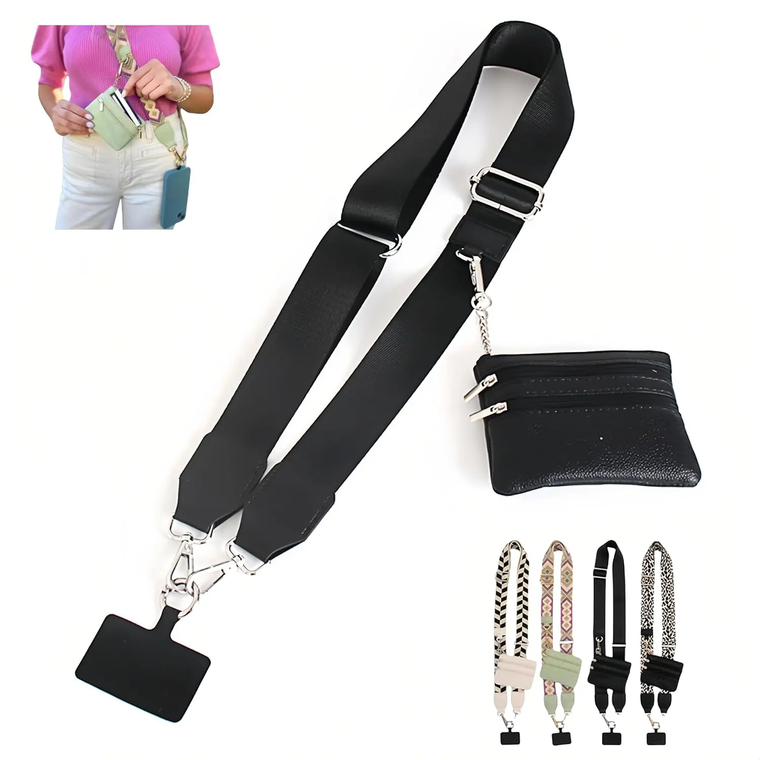 ·Diseño multifuncional: cada conjunto incluye una tarjeta de teléfono móvil adecuada para la mayoría de las carcasas de teléfonos inteligentes. La correa ajustable oscila entre 39 y 55 pulgadas, lo que le permite cambiar fácilmente entre cadenas cruzadas y pulseras para mayor comodidad.