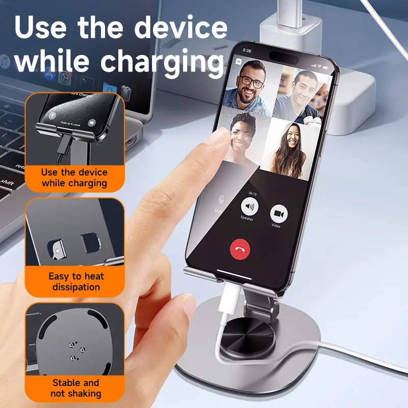 Device-Friendly Features: Silicone padding prevents scratches, while the weighted base resists slipping.